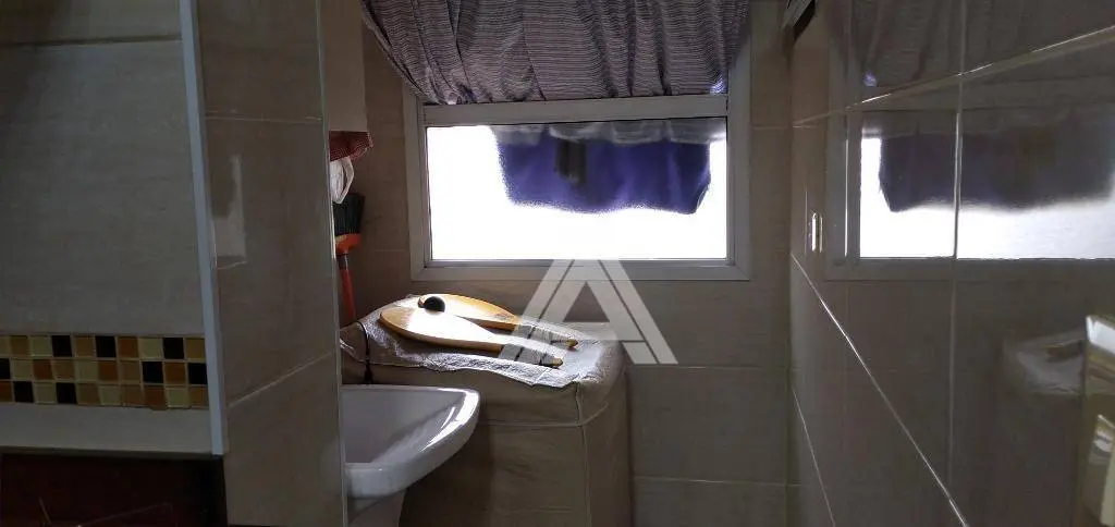 A área íntima conta com três dormitórios bem distribuídos, sendo uma suíte com closet que proporciona organização e conforto. O banheiro social atende aos demais ambientes com praticidade. A cozinha planejada apresenta ótimo aproveitamento de espaço, com armários que valorizam a funcionalidade e facilitam a rotina doméstica, além de conexão direta com a área de serviço.