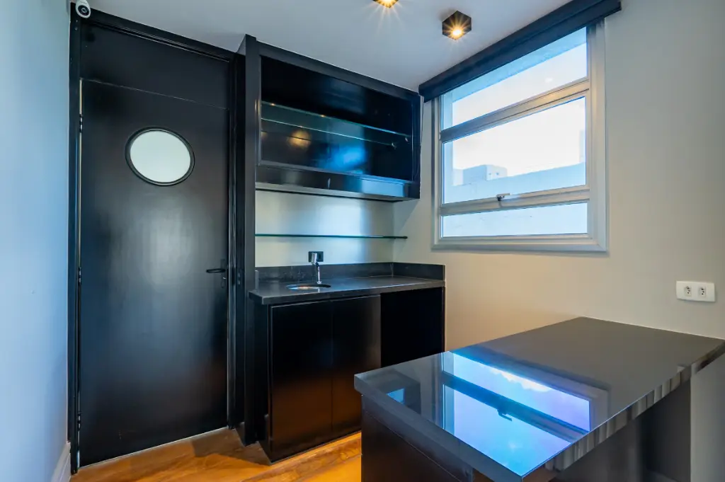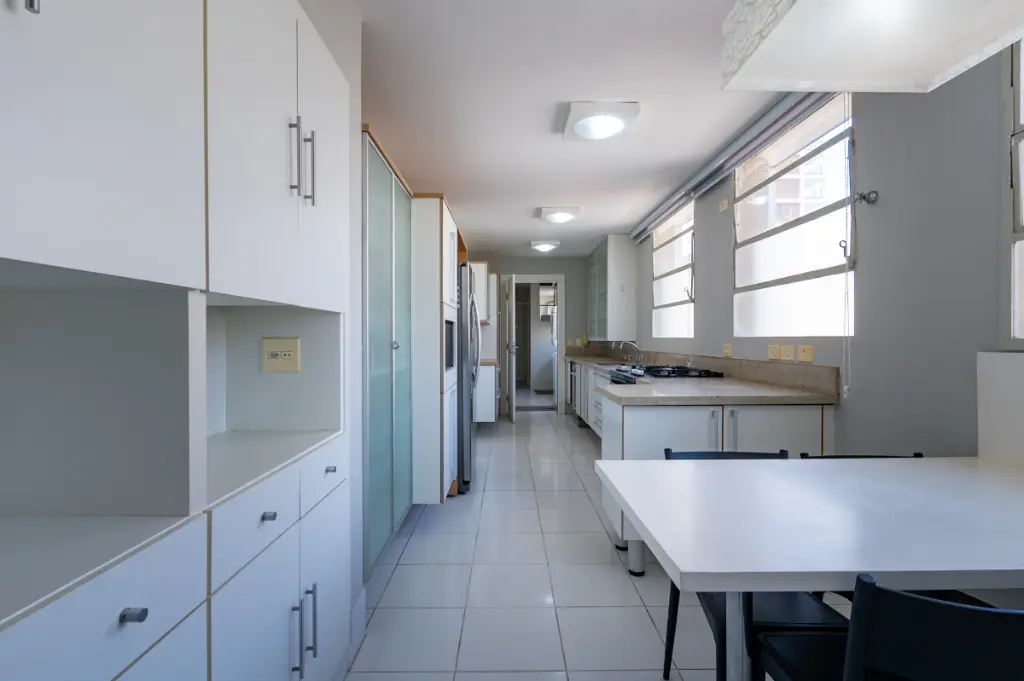 240m² reformado com requinte. A cozinha assinada pela Kitchens, totalmente equipada e planejada com acabamentos de excelência, complementa o projeto com requinte e funcionalidade para um estilo de vida exclusivo.
