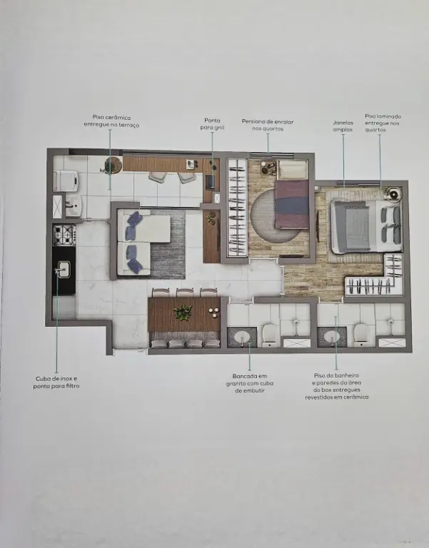 Apartamento moderno e nunca habitado, com excelente distribuição: