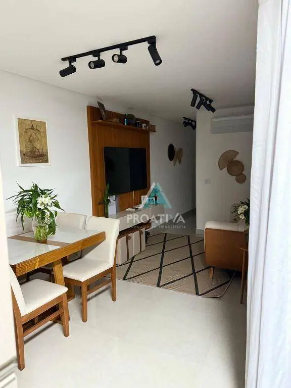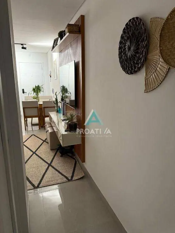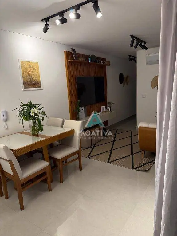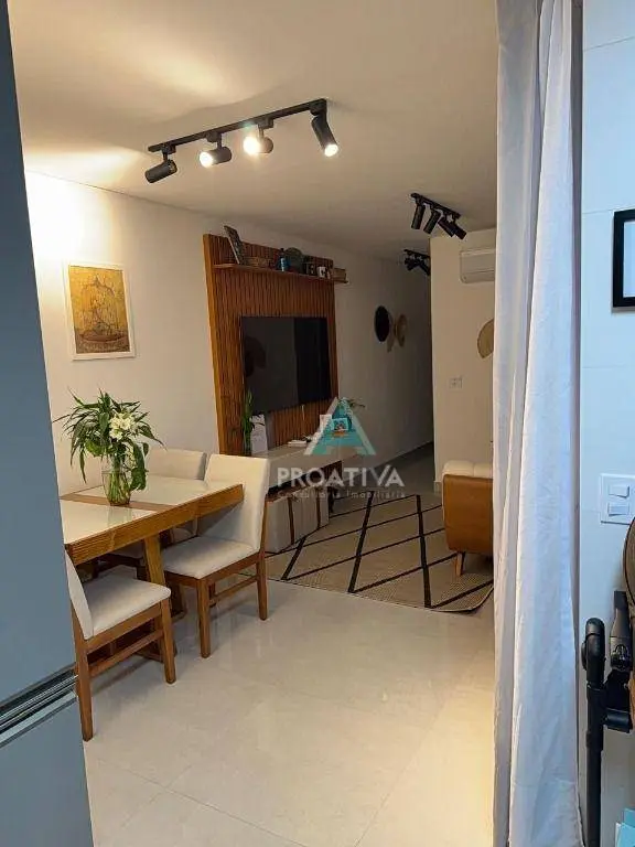 Apartamento com elevador, 2 dormitórios (sendo 1 suíte) e 2 vagas de garagem. Conta com móveis planejados, sala para 2 ambientes integrada à cozinha e área gourmet coberta com churrasqueira.