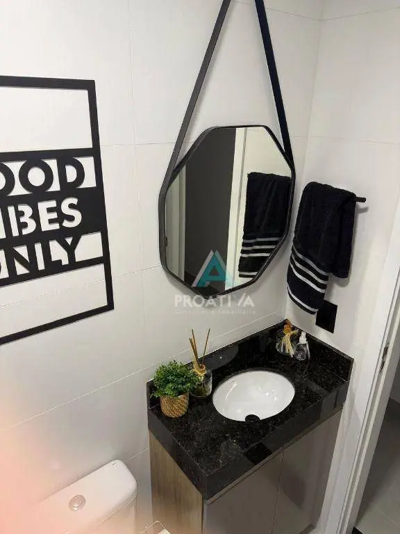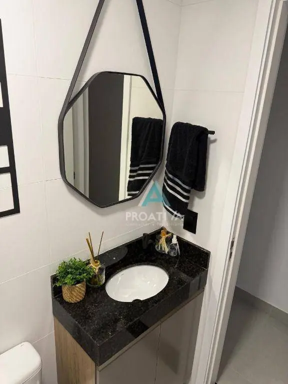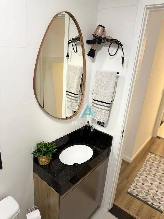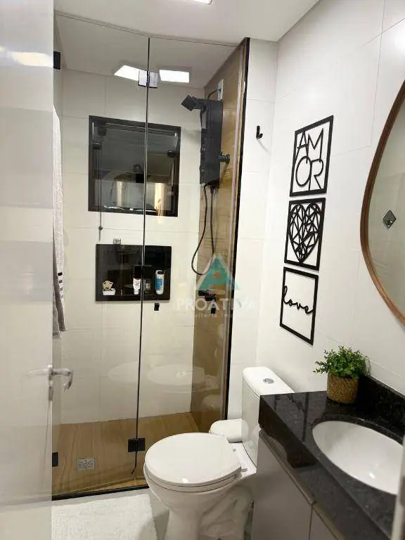Acabamento de alto padrão, com porcelanato na cozinha, sala e banheiros, além de piso laminado nos dormitórios.
