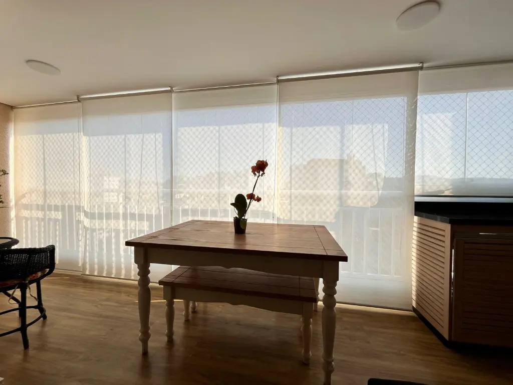 Sacada com envidraçamento e persianas