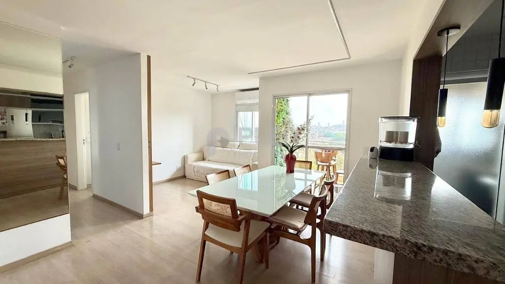 72 m² - Sala ampliada com cristaleira e cozinha montada