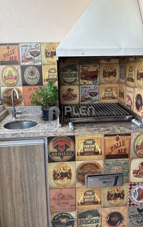 Varanda gourmet com churrasqueira e jardim vertical