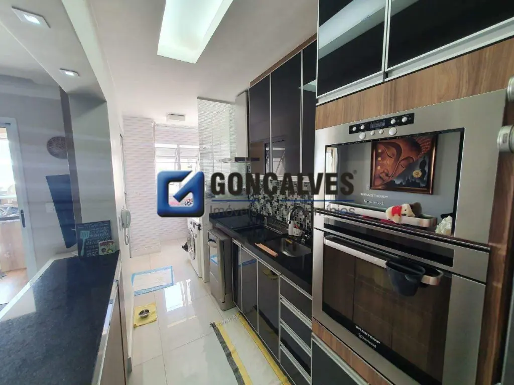 Excelente apartamento residencial à venda no bairro Santa Paula, em São Caetano do Sul. São 70 m² de área interna, distribuídos em 2 quartos, sendo 2 suítes, 1 sala e 1 banheiro, além de 2 vagas de garagem, dormitórios e banheiro, lavabo, área de serviço e água individual. Com interfone, portaria 24 horas. Ponto de referência próximo ao local indicado.