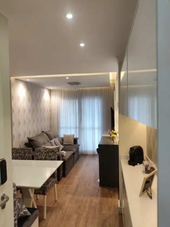 Lindo apartamento, com móveis planejados em todos os cômodos com 3 dormitórios sendo 1 suíte, varanda gourmet com churrasqueira a carvão e envidraçada, fechadura eletrônica e 1 vaga de garagem.