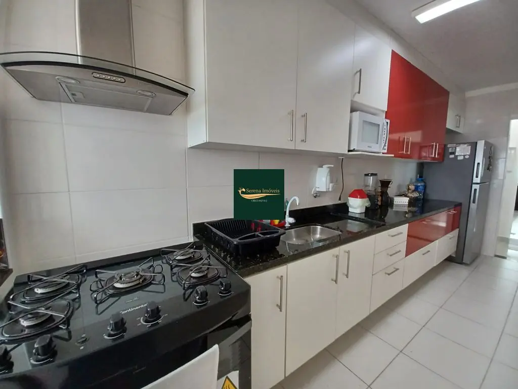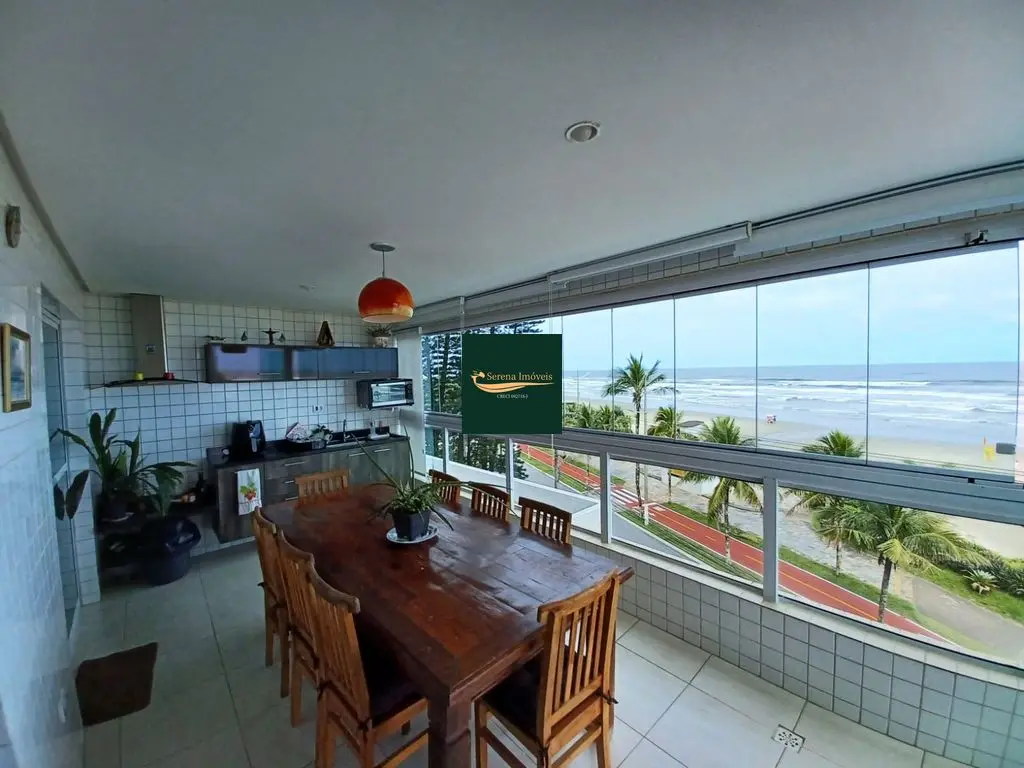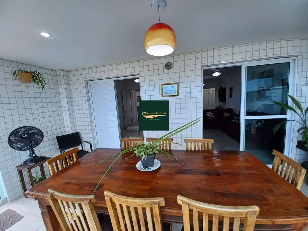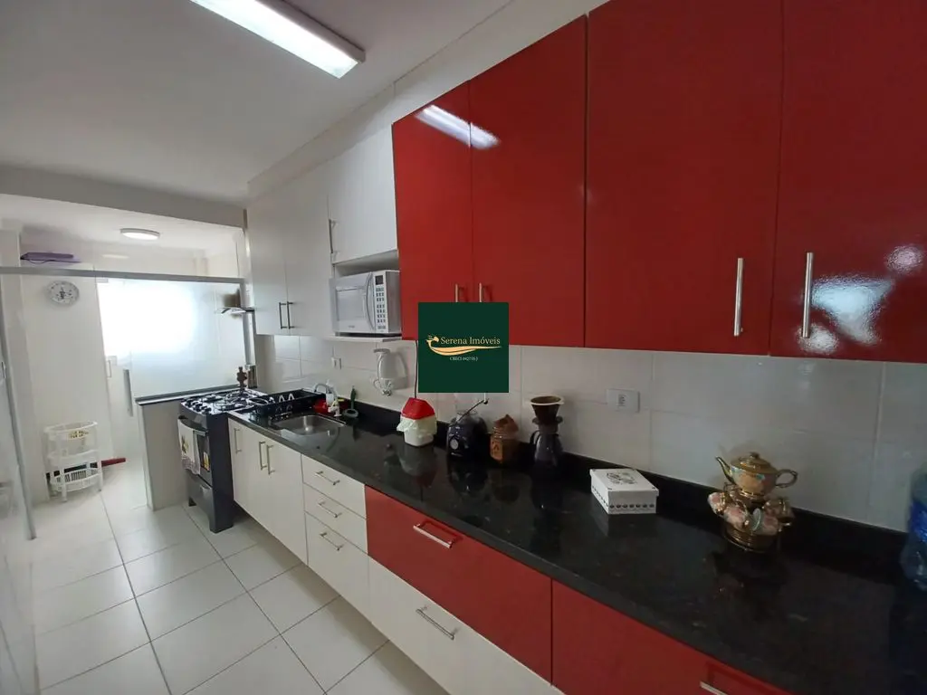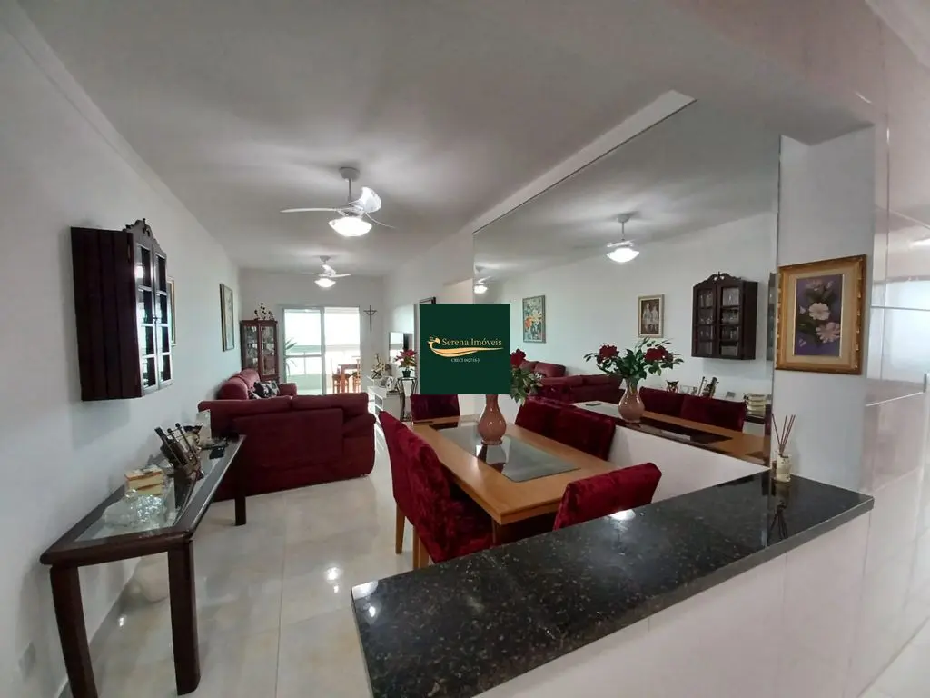 O apto conta com 3 quartos amplos (1 suíte), com armários planejados, 2 banheiros com armários, sala de estar e jantar com vista para o mar, cozinha equipada com armários, lavanderia e