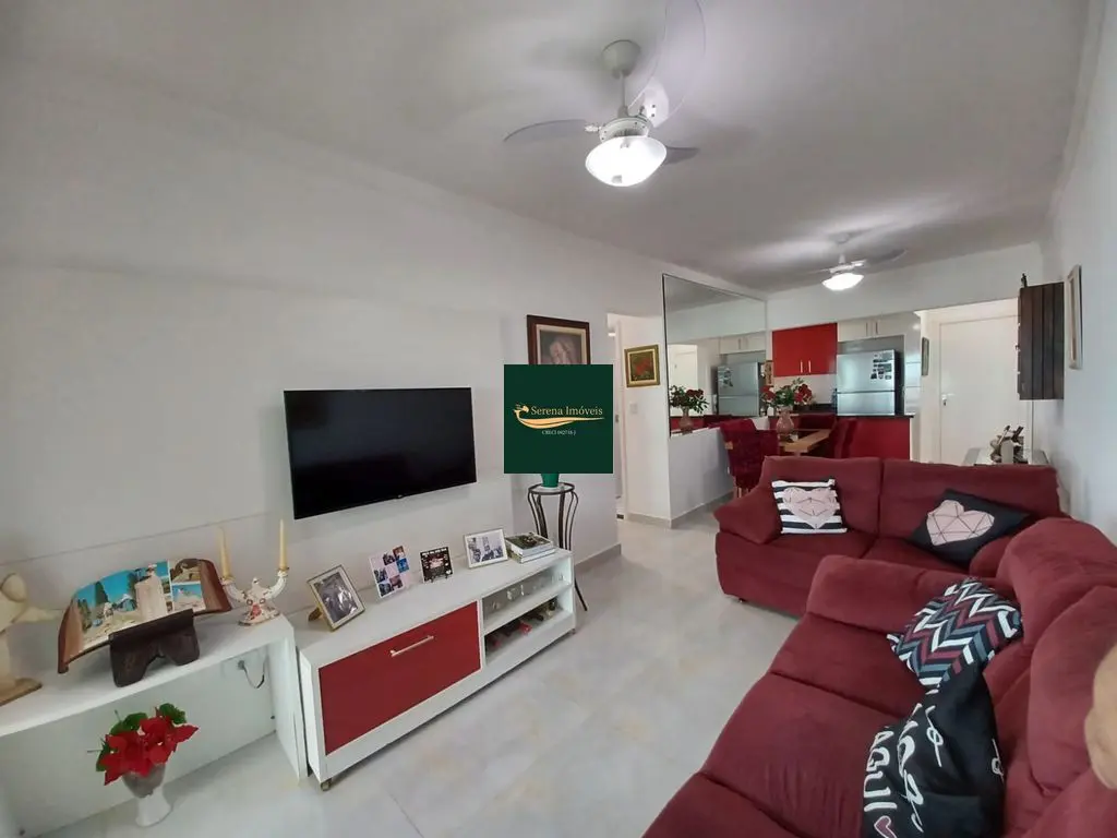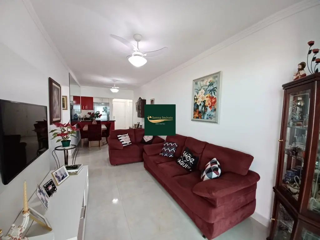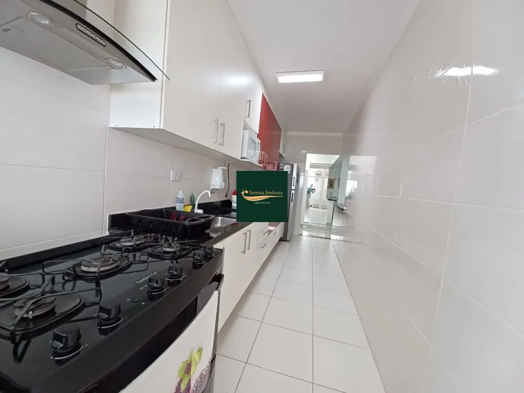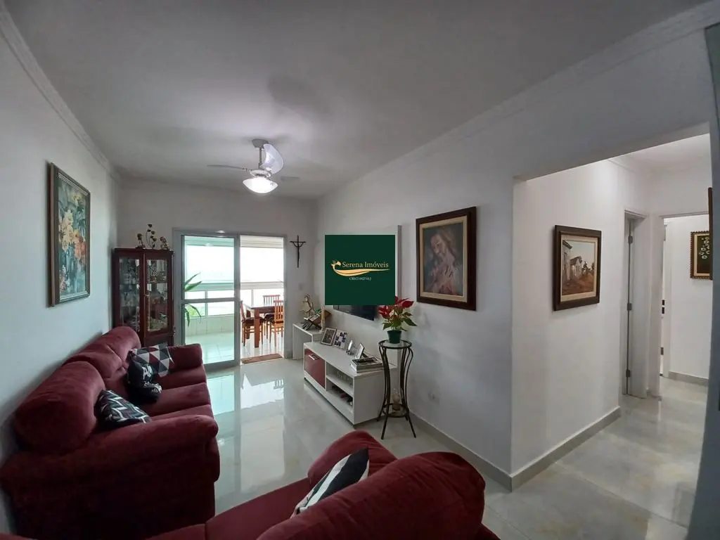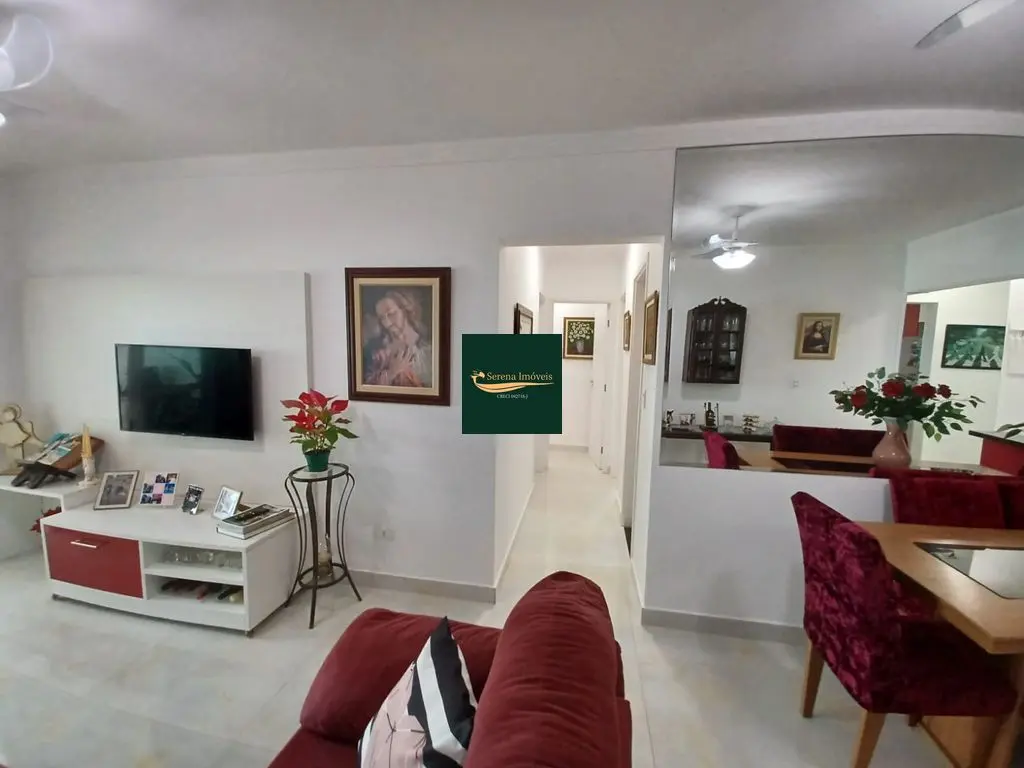 O apto conta com 3 quartos amplos (1 suíte), com armários planejados, 2 banheiros com armários, sala de estar e jantar com vista para o mar, cozinha equipada com armários, lavanderia e