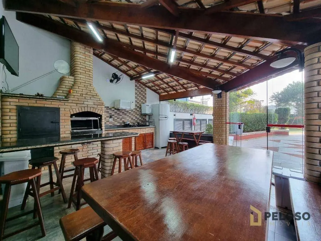 Lazer completo com piscina, salão de festas, salão de jogos, academia, churrasqueira, playground e quadra poliesportiva.