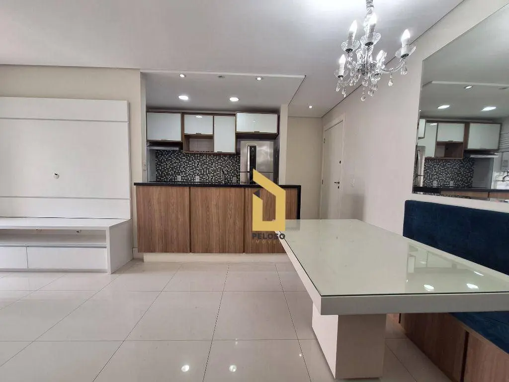2 dormitórios, sendo 1 suíte com terraço. 1 banheiro social, sala 2 ambientes e cozinha conceito aberto com varanda gourmet, tudo bem integrado.
