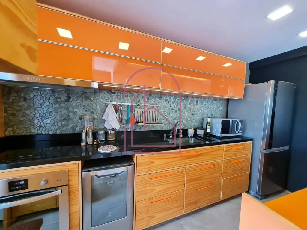 O projeto foi pensado nos mínimos detalhes, unindo funcionalidade, estética e muito bom gosto. A cozinha americana, integrada à área social, é repleta de armários planejados de excelente qualidade, assim como a lavanderia, que segue o mesmo padrão sofisticado de marcenaria.