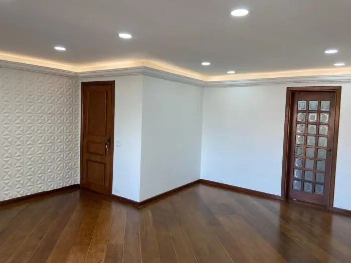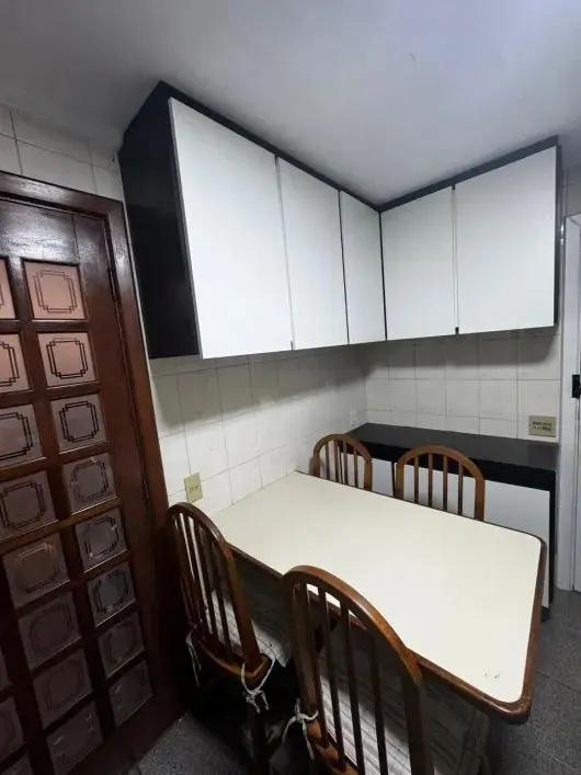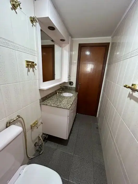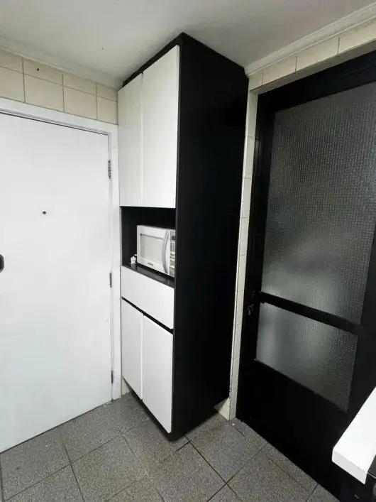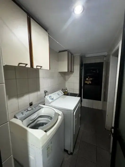 Apto com 110m2, com 3 dormito´rios com arma´rios, sendo 1 sui´te, sala com terrac¸o, wc social, cozinha com arma´rios embutidos, wcs com gabinete e box, quarto e wc de empregada, a´rea de servic¸o bem ventilada, depo´sito, 2 vagas cobertas.
