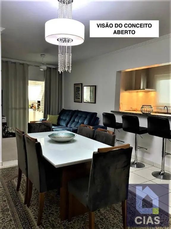 Sala para dois ambientes conjugadas com a cozinha