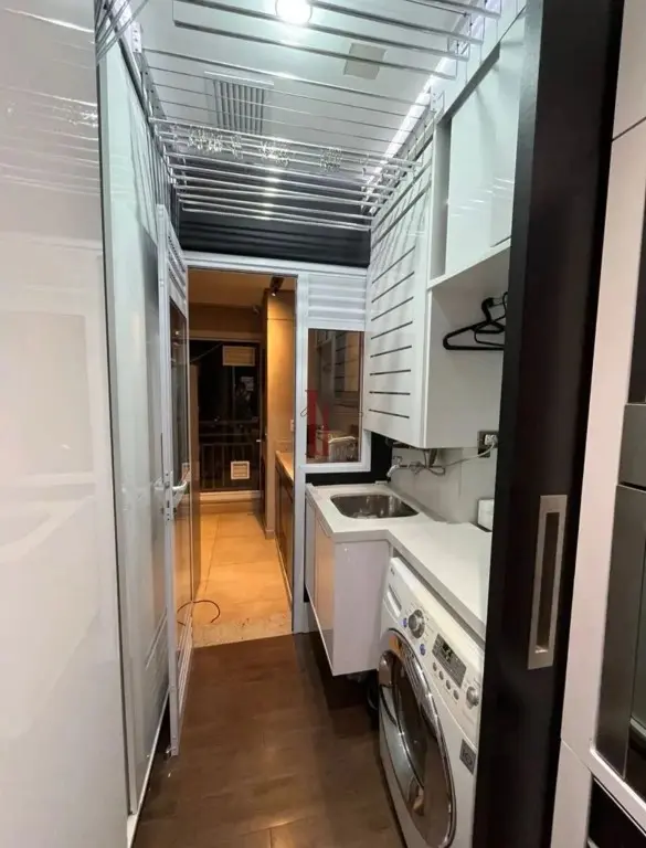 Lavanderia com despensa, armários planejados e espaço otimizado para varais