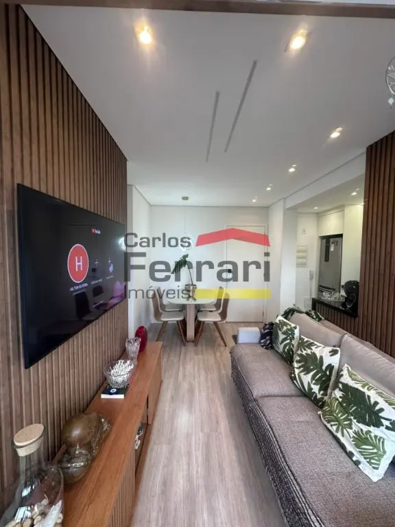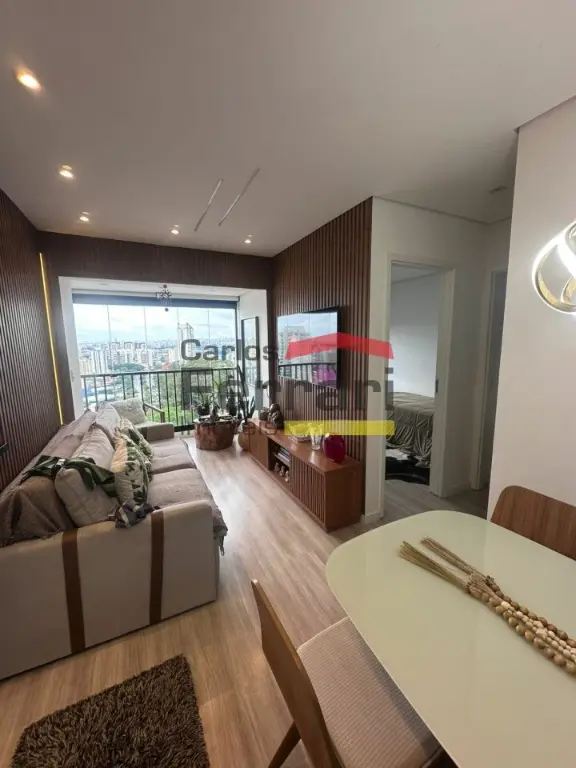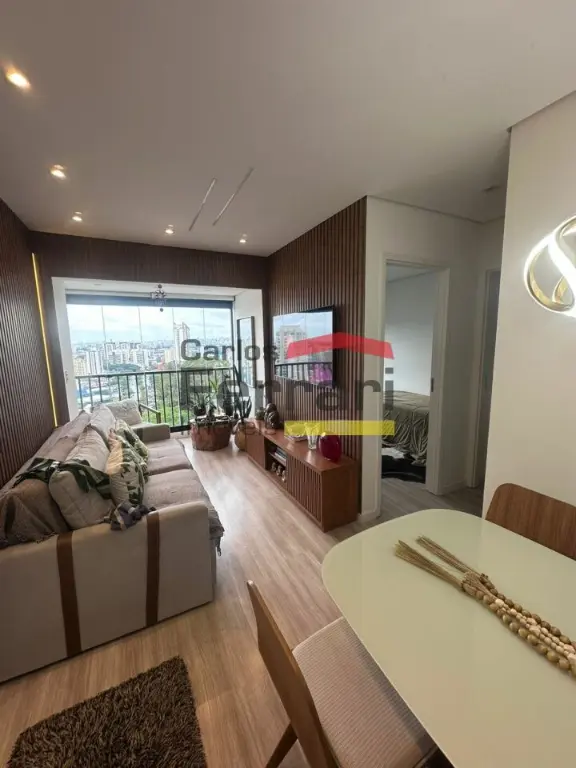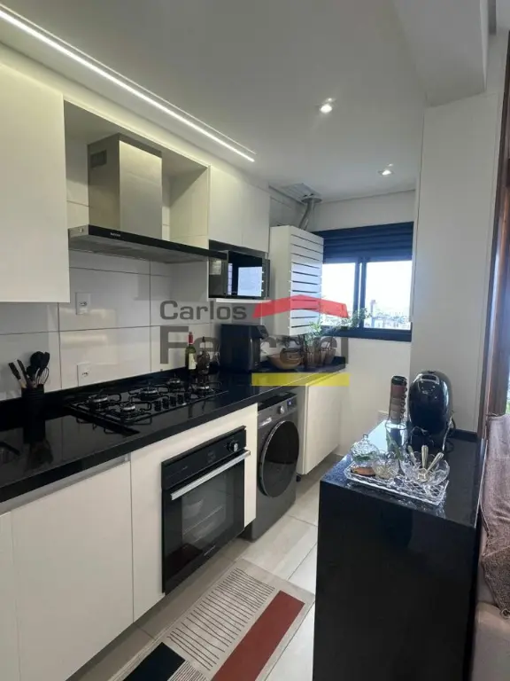 O imóvel conta com 2 dormitórios, sendo 1 suíte, total de 2 banheiros, sala para dois ambientes integrada à varanda envidraçada, criando um espaço ampliado e funcional para receber visitas. A cozinha planejada em conceito aberto já está equipada com cooktop, forno embutido e exaustor, além de aquecedor a gás instalado. O apartamento possui piso vinílico, que oferece conforto térmico e fácil manutenção. A área de serviço integra a cozinha e dispõe de armários e máquina lava e seca inclusa.