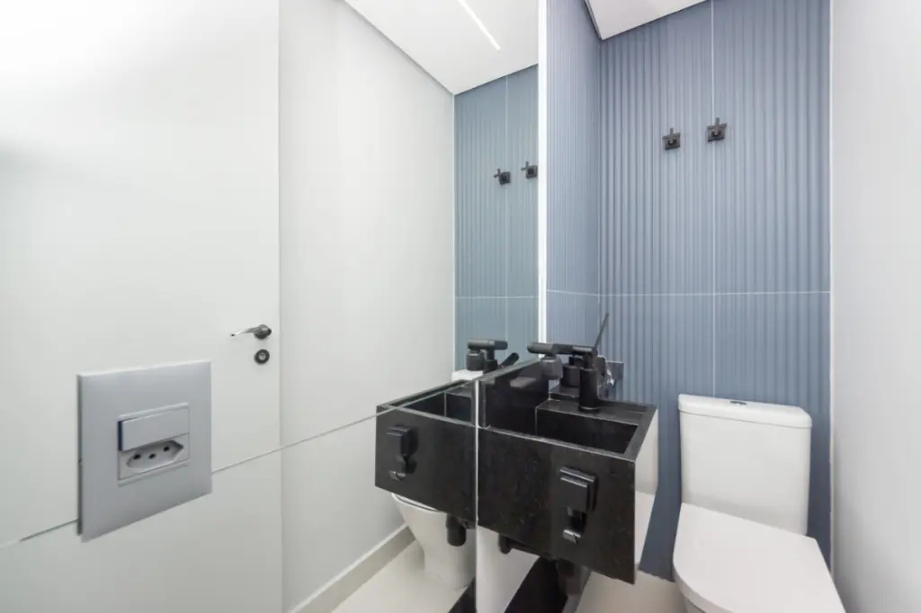 As duas suítes completas são verdadeiros refúgios. Ambientes pensados para descanso, silêncio e bem-estar, com o luxo de dois closets que organizam a rotina e trazem leveza ao dia a dia, o lavabo bem centrado e fundamental. Aqui, cada detalhe transmite calma e conforto.