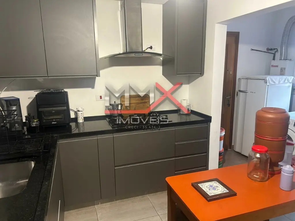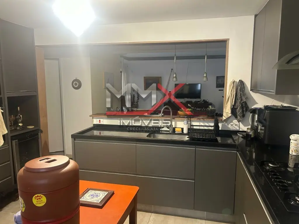 O imóvel conta com cozinha americana equipada com armários, integrada aos ambientes, além de adega climatizada e ar condicionado, proporcionando mais conforto no dia a dia.