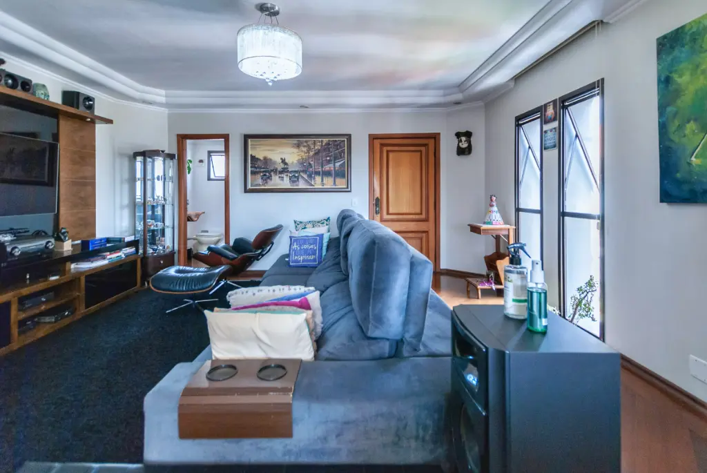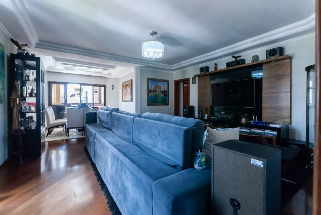 Apartamento de 150 m² no 11º andar com vista livre e 3 Dormitórios sendo 1 Suíte com banheira e sacada, Sala 2 ambientes com varanda, Cozinha ampla, wc social, lavabo, área de serviço com despensa com wc e entrada de serviço, 2 vagas de garagem.