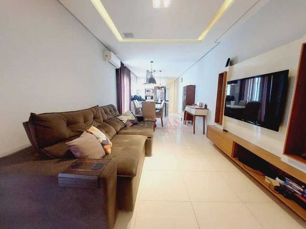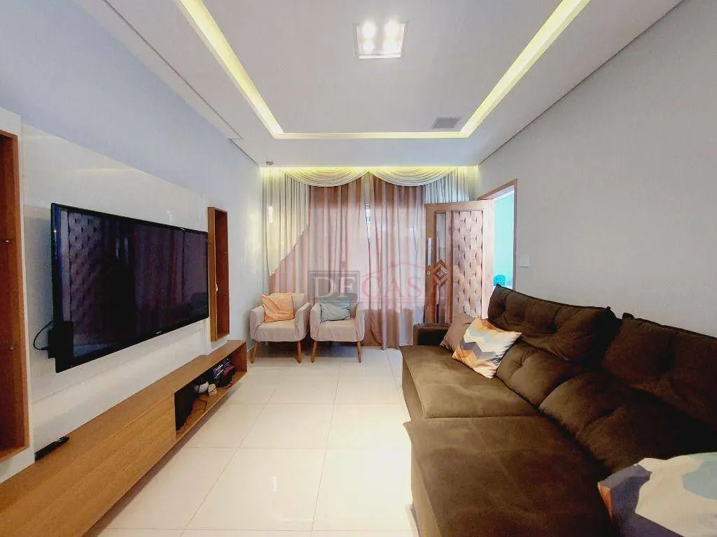 Casa com 165m² de área construída, 2 vagas de garagem, corredor lateral, sala 2 ambientes toda rebaixada em gesso, cozinha com planejados, 2 suítes, terraço.