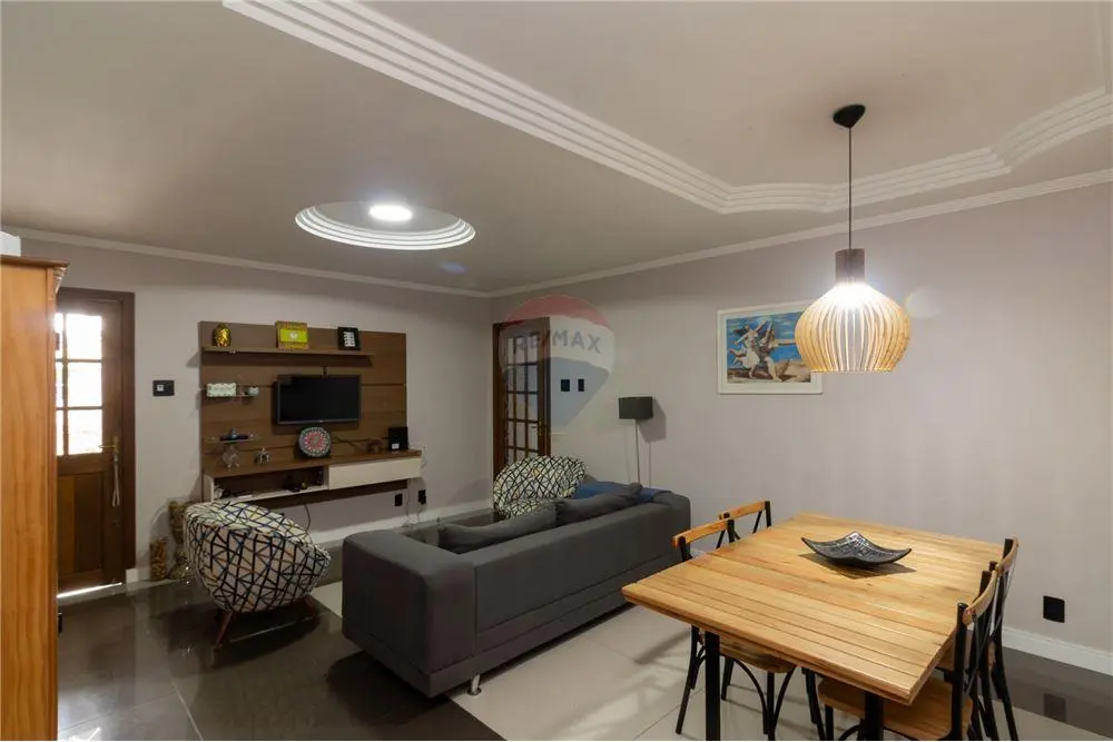O segundo andar, que também tem acesso externo, tem uma grande sala de estar, bem iluminada, composta por painel planejado e sanca. A sala de jantar, acoplada a sala de estar, tem espaço para uma grande mesa de até 8 lugares.