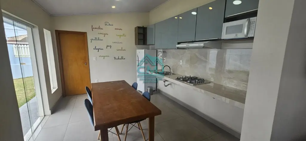 Imóvel possui 3 dormitórios, sendo 2 suítes, 2 banheiro sociais, sala, cozinha, área de serviço e garagem.