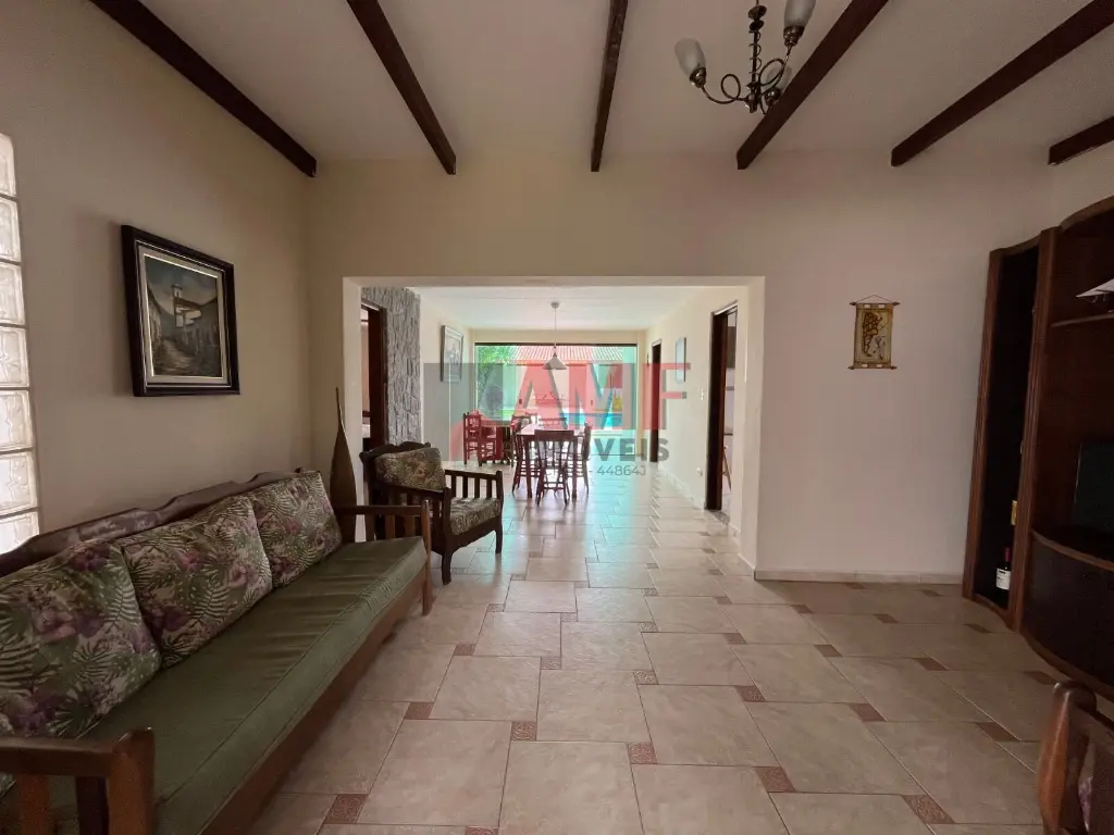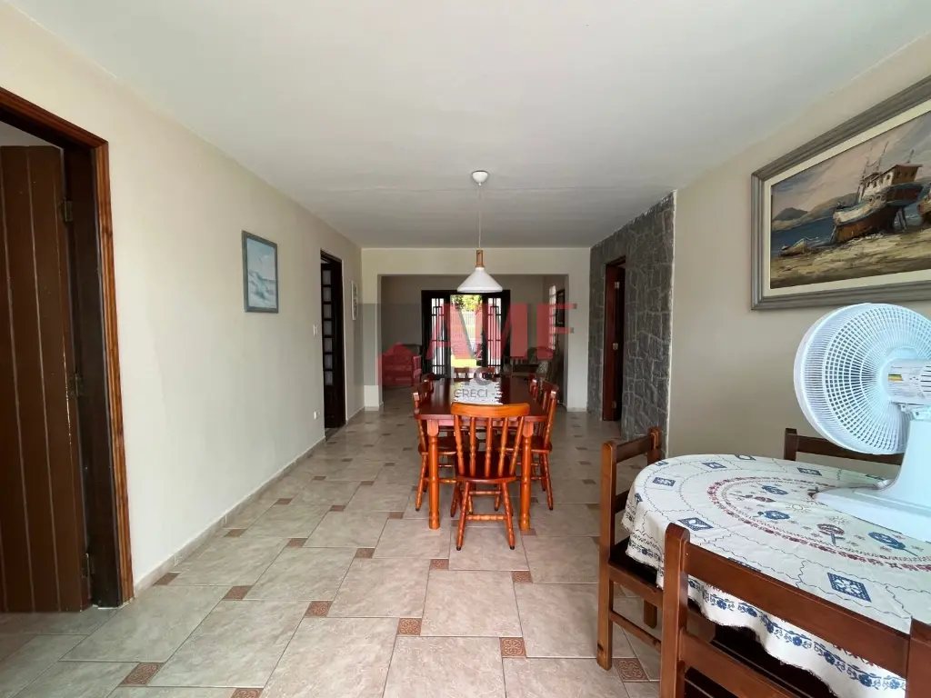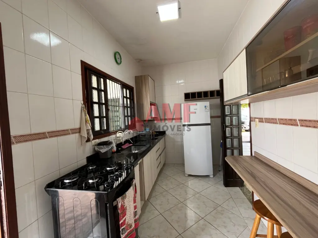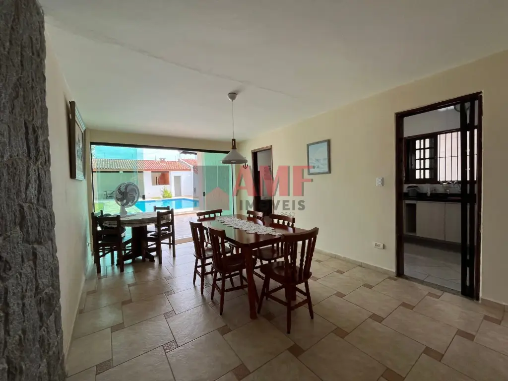 A casa, totalmente mobiliada, apresenta 3 quartos, sendo 1 suíte, proporcionando aconchego e privacidade. A sala de jantar é o ambiente perfeito para refeições memoráveis em família.