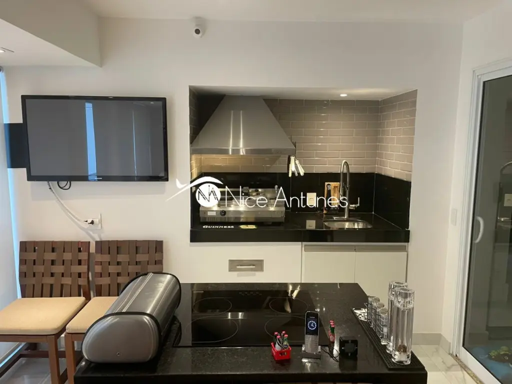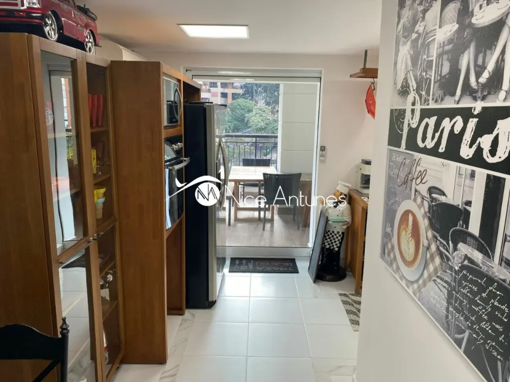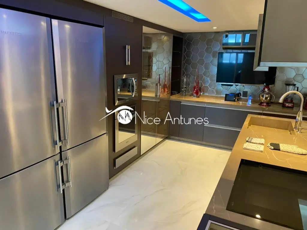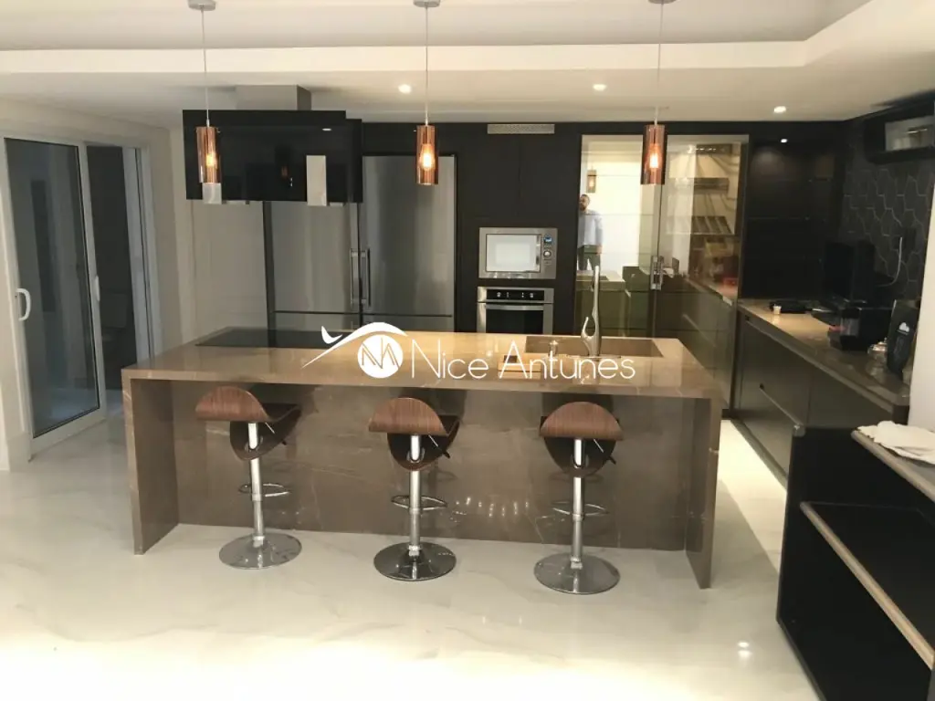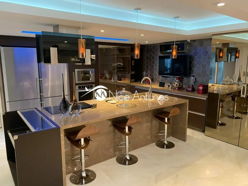 São três cozinhas, um escritório, elevador interno e todos os móveis sob medida da renomada marca Ornare.