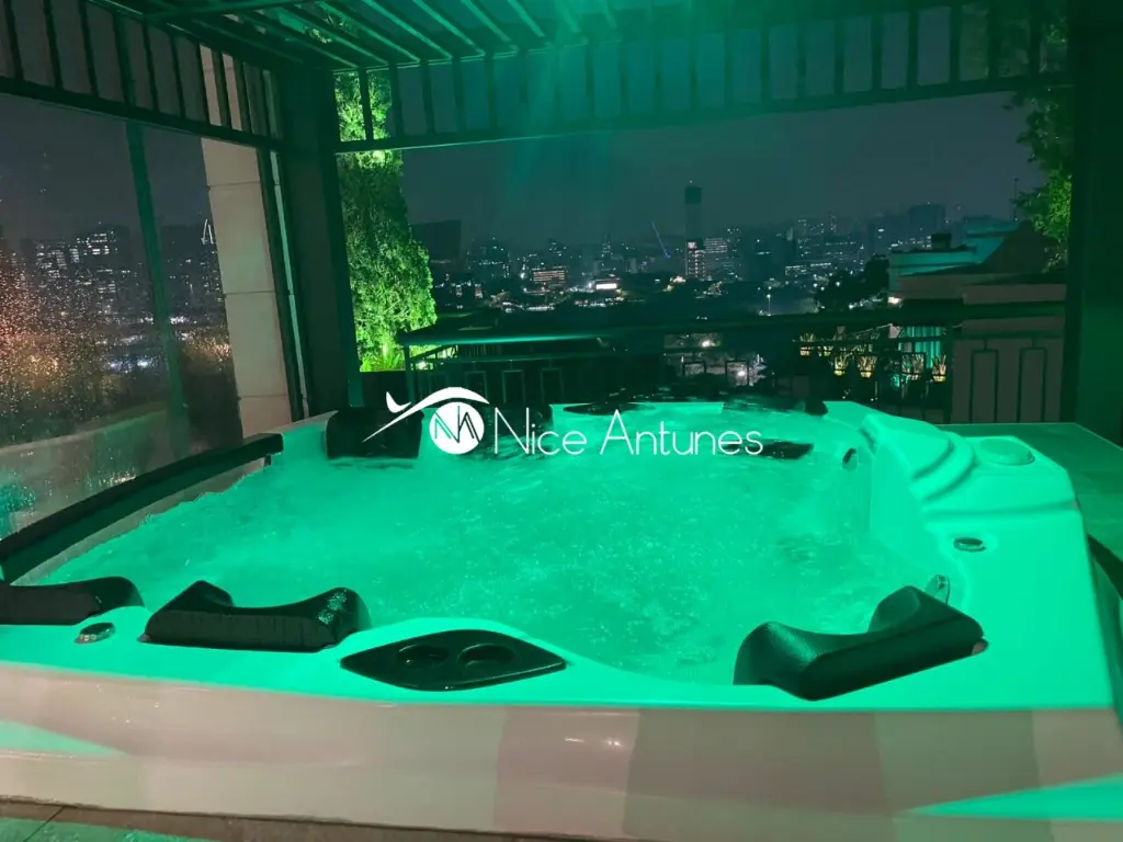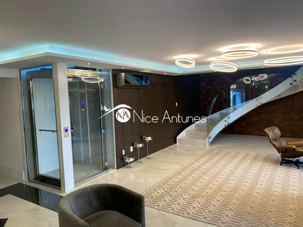 A praticidade se une ao conforto: são sete vagas de garagem, dois depósitos, sauna, piscina aquecida, ofurô e um sistema de automação que controla cada detalhe.