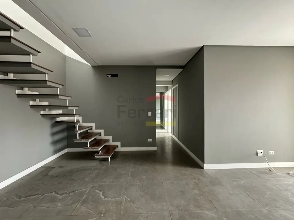 No pavimento superior, sala que pode ser usada como home theater ou escritório e amplo terraço, com muita privacidade.