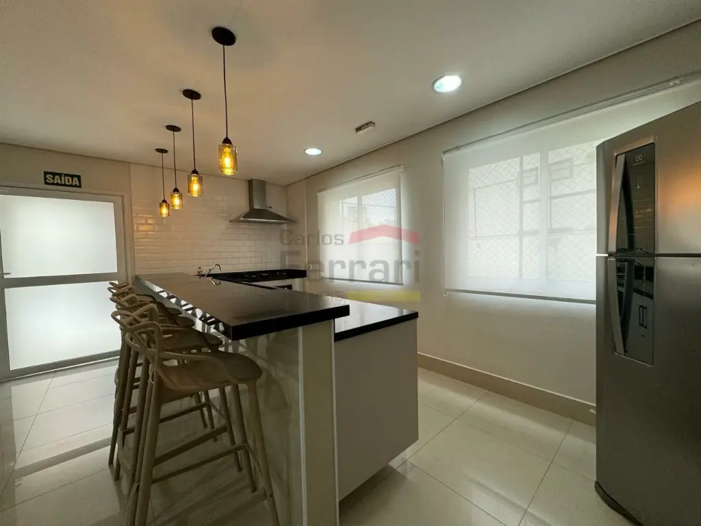 O condomínio - piscinas adulto e infantil, salão de festas mobiliado e equipado integrado, churrasqueira e forno de pizza, academia, playground, brinquedoteca e portaria virtual.