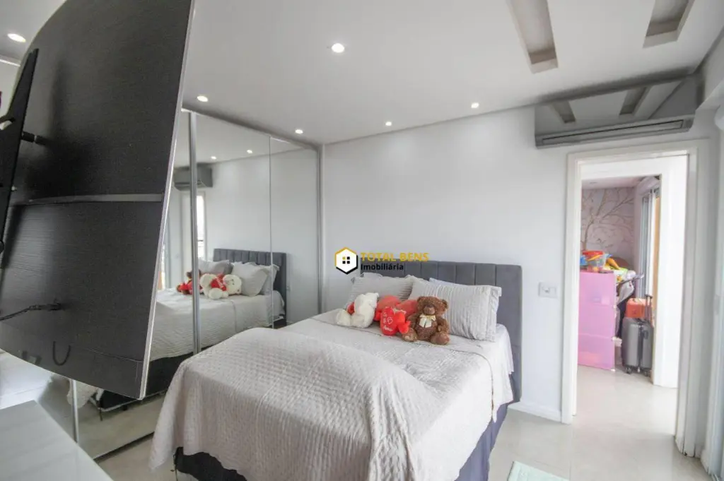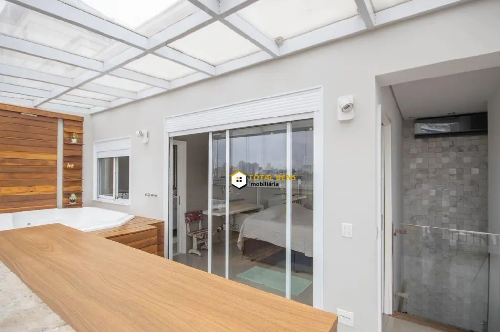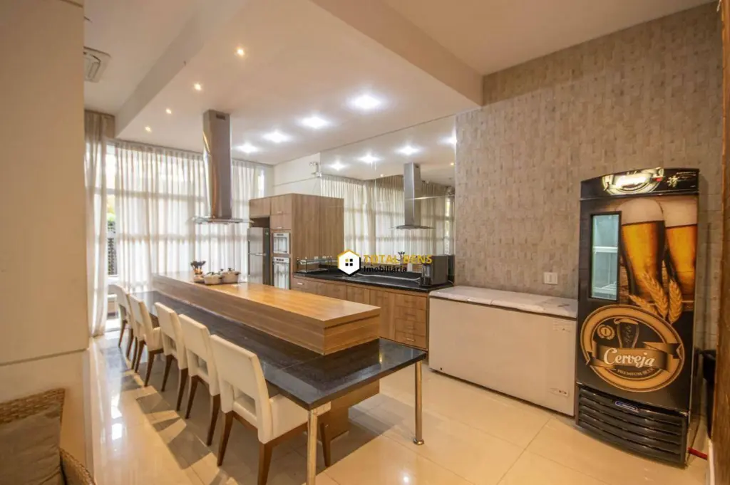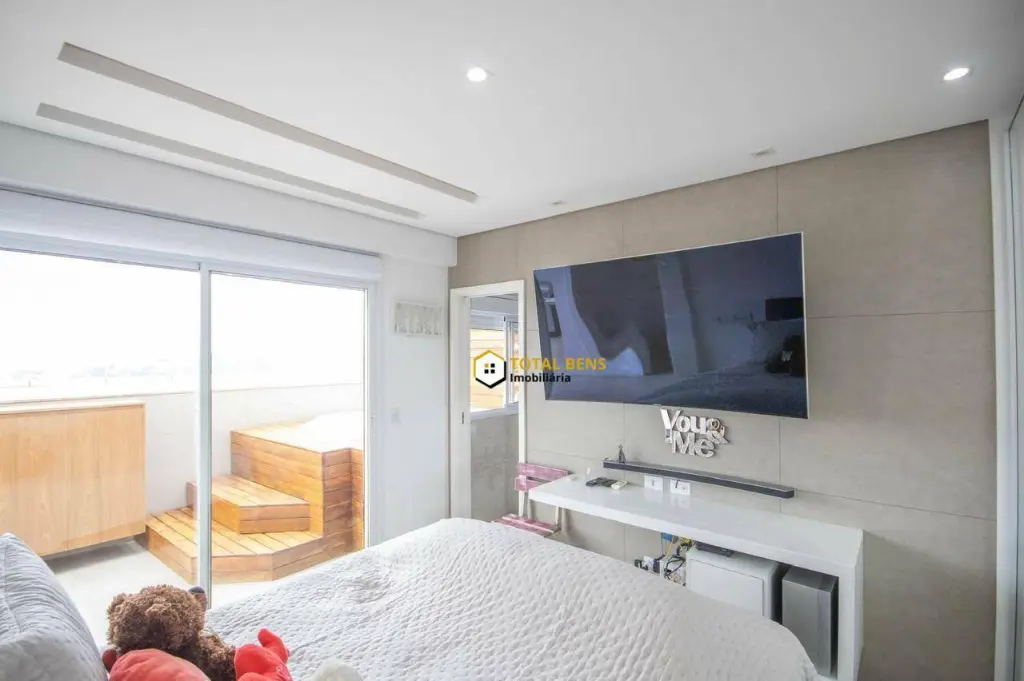 Cobertura com design moderno e amplo, na parte superior está 2 suítes, sendo a principal com um banheiro com dois chuveiros, duas pias e uma bela decoração e a área de lazer que conta com uma hidromassagem grande, churrasqueira elétrica a gás Chair Broll e vista livre.