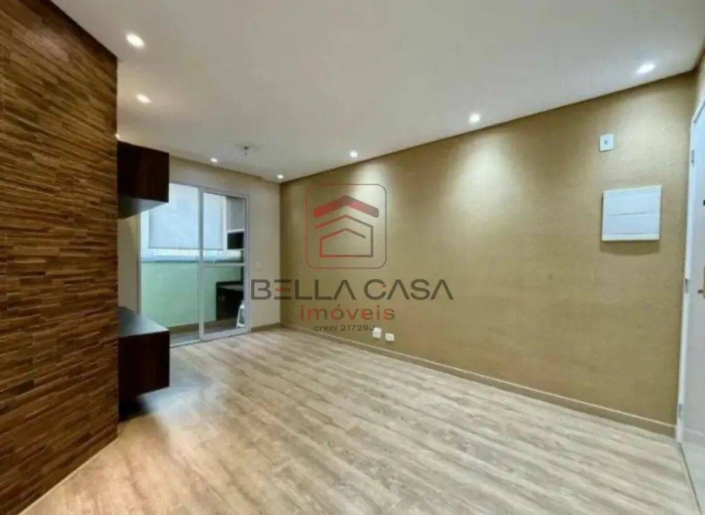 Imóvel com sala de jantar, piso laminado e sancas de gesso + varanda.