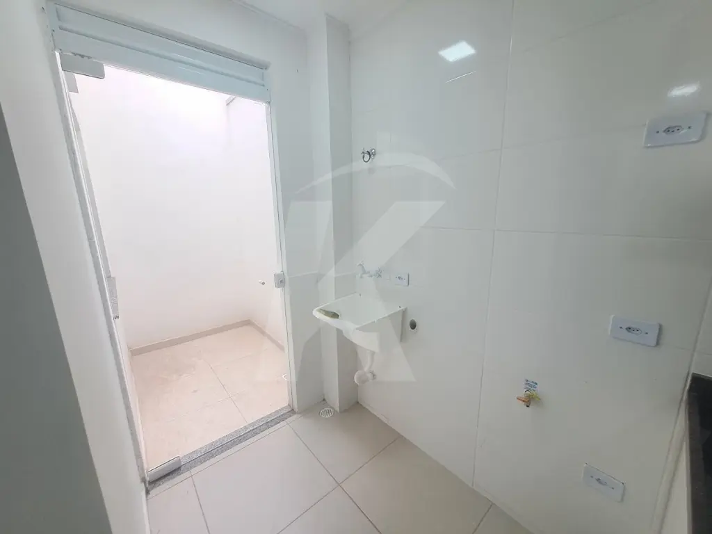 Apartamento seminovo em condomínio fechado, medindo 27 m² com 1 dormitório, sala, cozinha americana, banheiro com box, área de serviço e pequeno quintal.