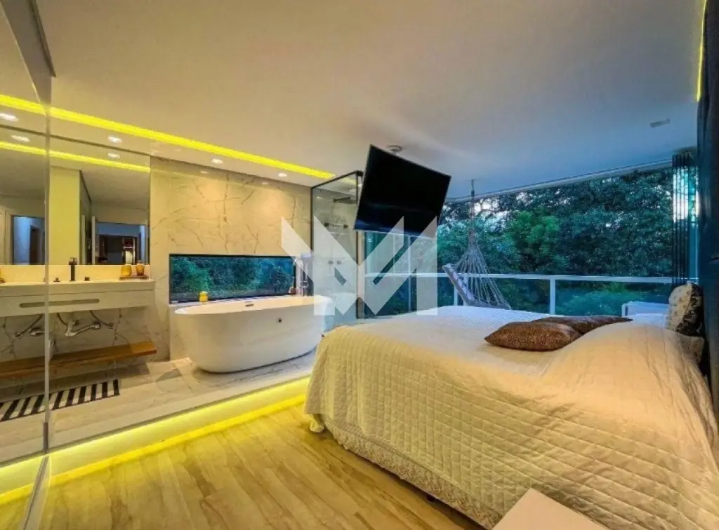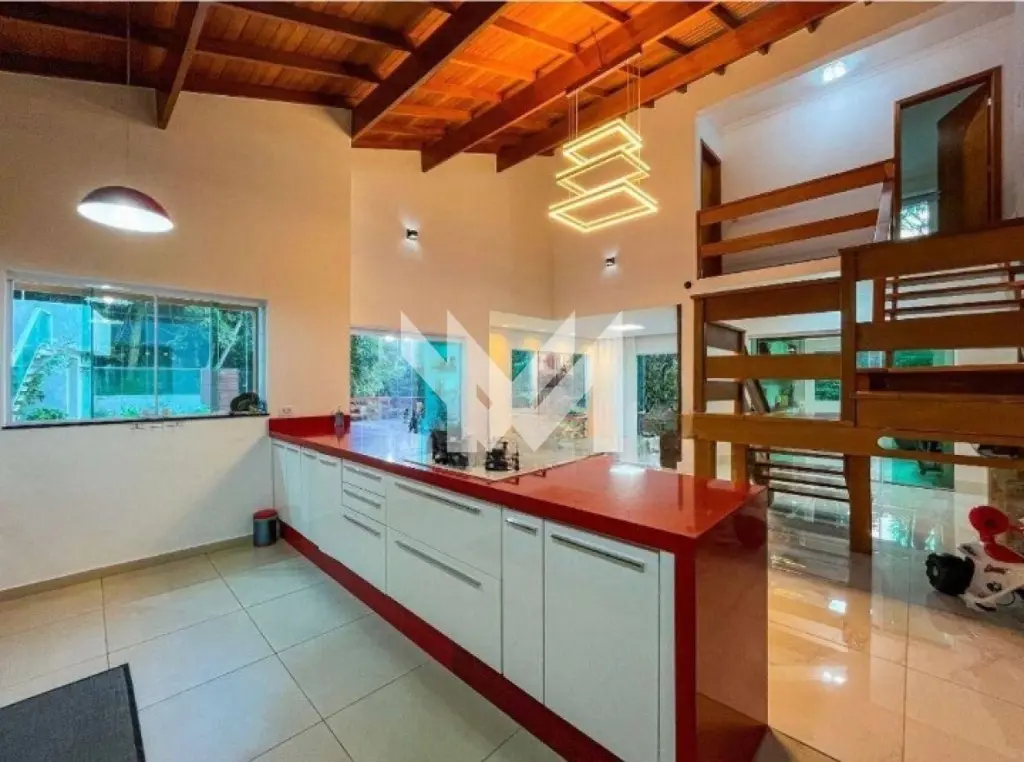 Com 4 suítes, sala de jantar, sala de estar, cozinha, lavanderia, piscina, banheiro externo, água climatizada, despensa, depósito, 6 vagas para carros, área com árvores frutíferas e horta, placas solares e o condomínio conta com segurança 24 horas.