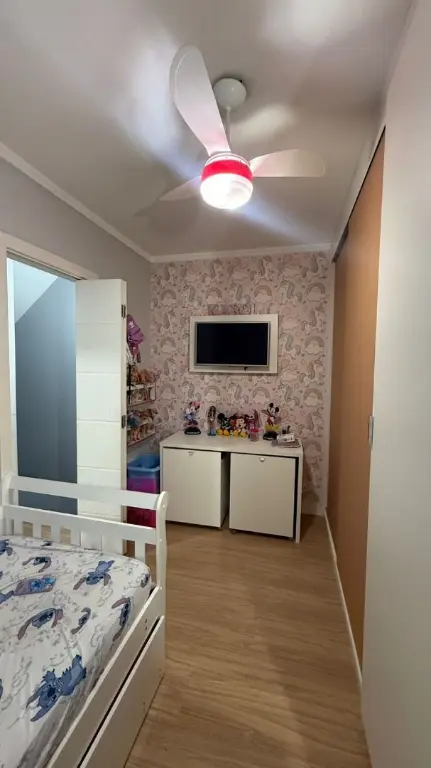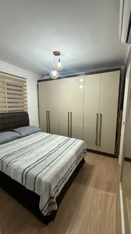 Churrasqueira coberta, para aproveitar com a família e amigos, dois quartos sendo um com planejados e também com ar-condicionado!
