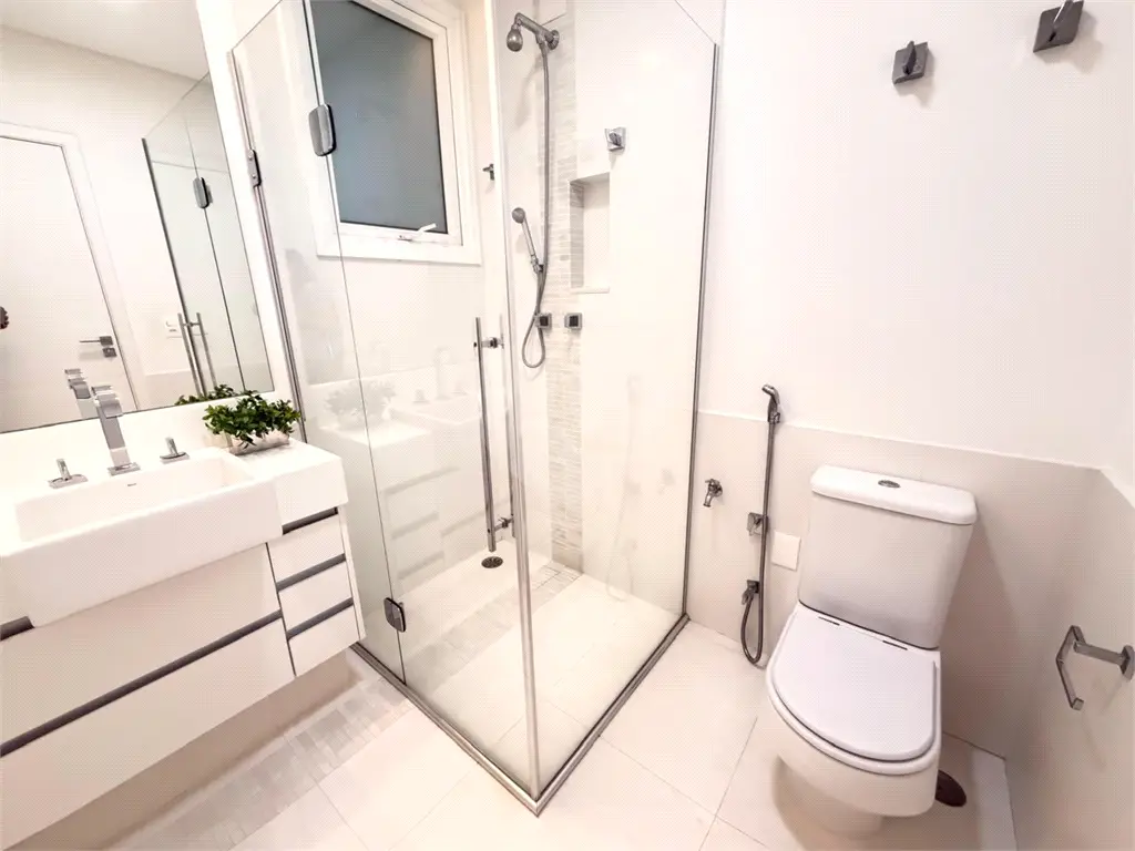 Suítes & Home Office: 4 amplas suítes, destaque para a máster com hidromassagem, chuveiro duplo e cuba dupla. Home office privativo para total foco e privacidade.