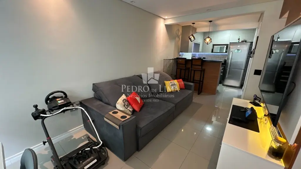 Sobrado em Condomínio na Vila Matilde á venda conta com 115 m2, duas suítes uma delas com ar condicionado e sacada com fechamento em vidro e armários planejados, nas duas suítes com box, um deles até o teto. Sala com dois ambientes toda automatizada com Alexa, semi mobiliada com sofá, toda em porcelanato, com painel de tv, lavabo, cozinha americana com armários planejados, geladeira, área de serviço com teto retrátil, duas vagas de garagem