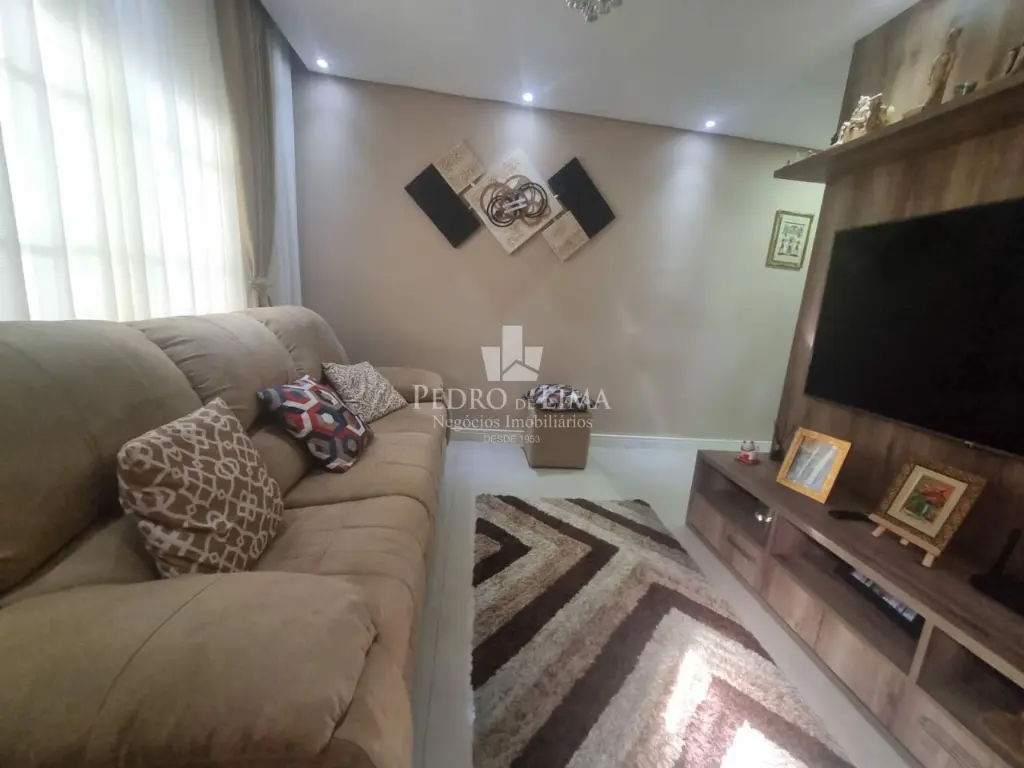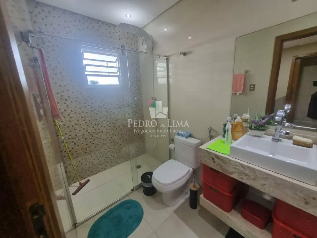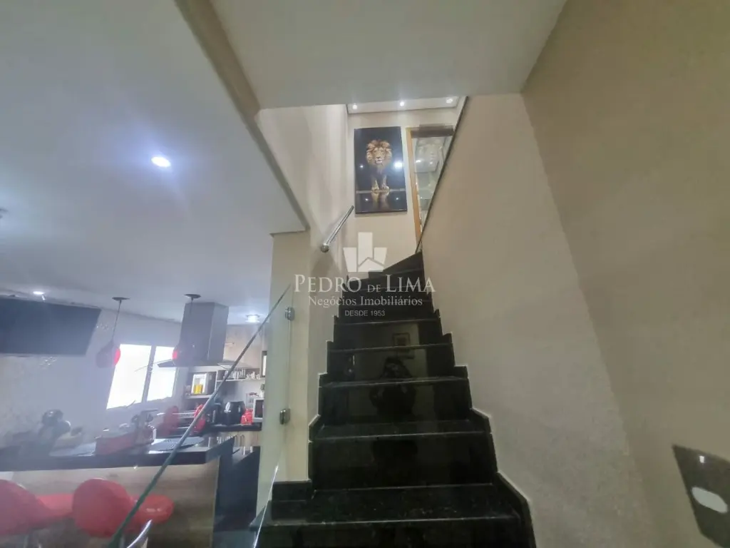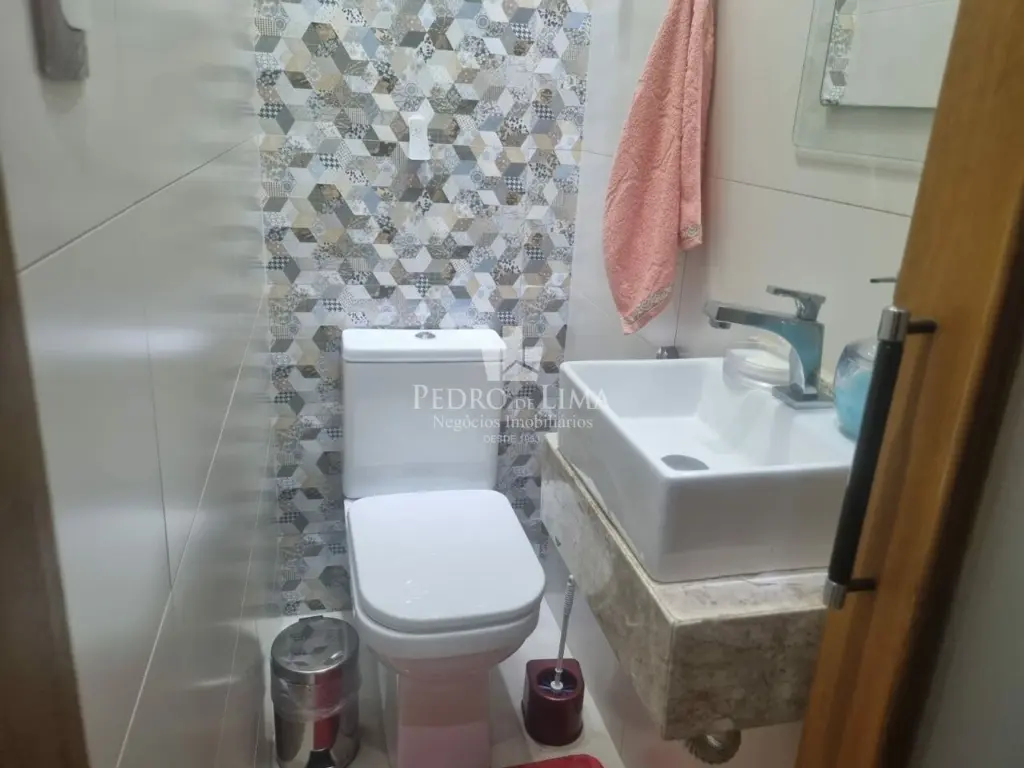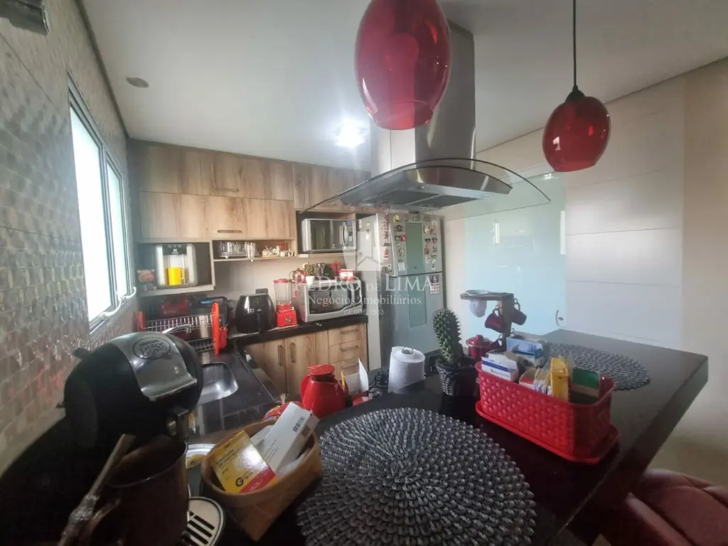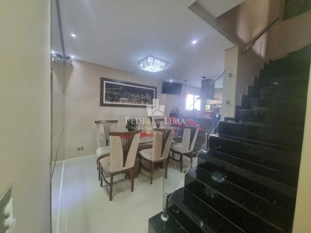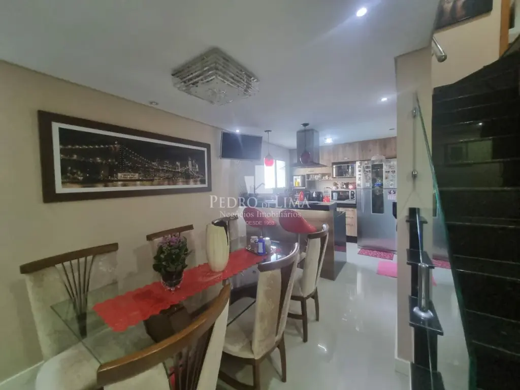 Sobrado de condomínio com sala de estar e Jantar, 3 Dormitórios bem espaçosos, lavanderia e 1 lavabo entre a cozinha e sala.