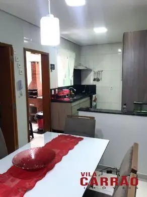 Ótimo sobrado com 3 dormitórios planejados, sendo 1 deles com sacada e suíte, banheiro social, lavabo, sala 2 ambientes, cozinha, área de serviço e churrasqueira.