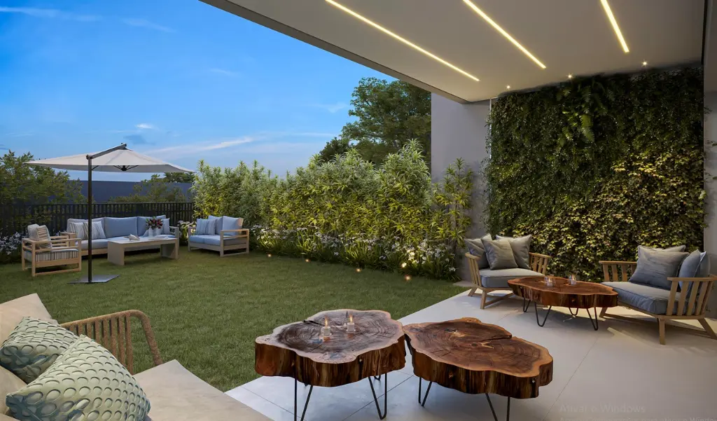 Arquitetura contemporânea, linhas harmoniosas, design equilibrado proporcionando ao verde do jardim e do rooftop criar uma conexão com o entorno.