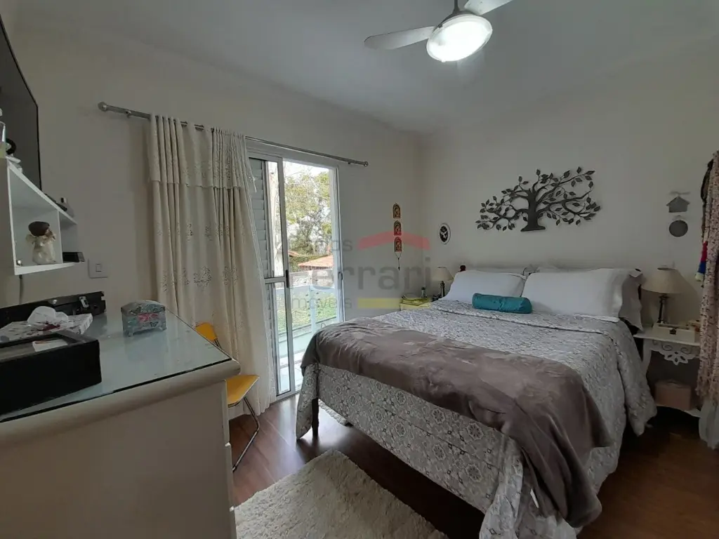 Sobrado em condomínio fechado no bairro das Palmas do Tremembé, com 3 dormitórios sendo 1 suíte, todos com armários embutidos e piso laminado de madeira, sala ampla para 2 ambientes, de estar e de jantar com piso em porcelanato, cozinha espaçosa com armários embutidos, lavabo, área de serviços com armários, varanda na suíte, 2 vagas de garagem, portão automático, espaço gourmet com churrasqueira, localização excelente, rua tranquila, próximo a mercados, restaurantes, bares, padarias e escolas.