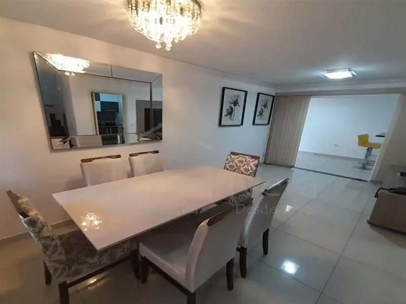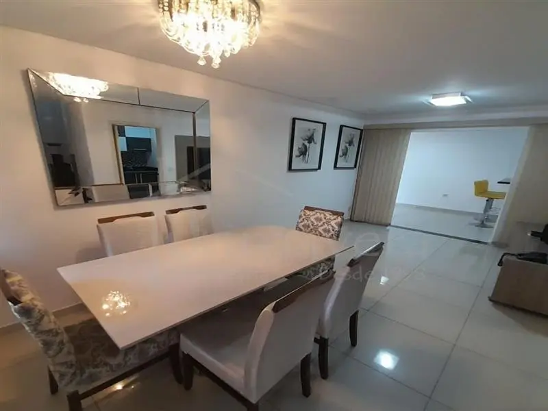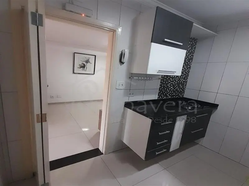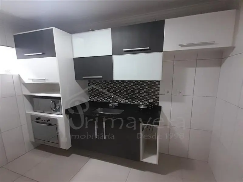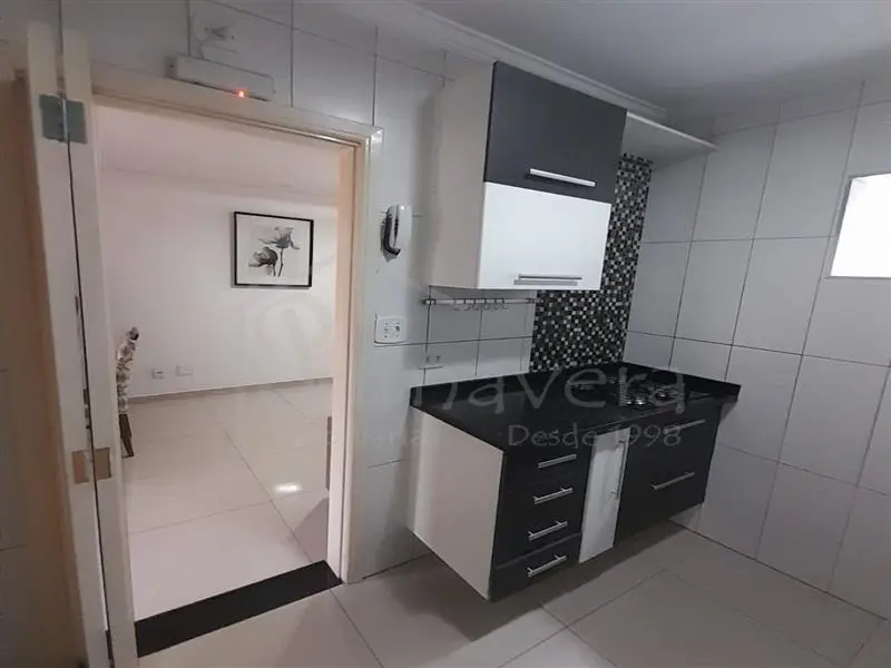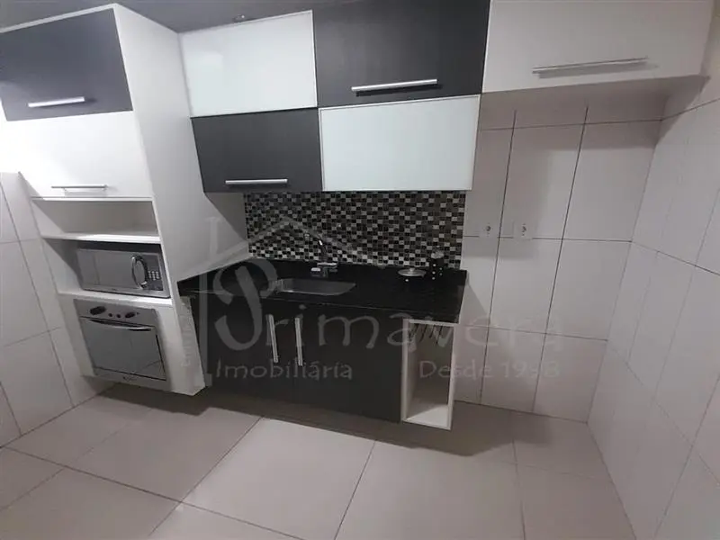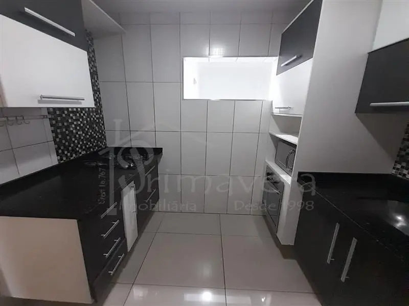 Ao entrar, você se depara com uma sala acolhedora, integrada a uma cozinha planejada, pronta para o dia a dia. O imóvel é semi mobiliado, contando com camas de solteiro, mesa de jantar e rack na sala - detalhes que facilitam a mudança e trazem ainda mais comodidade.