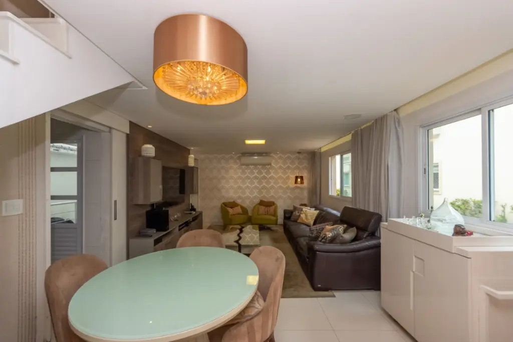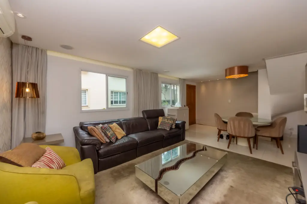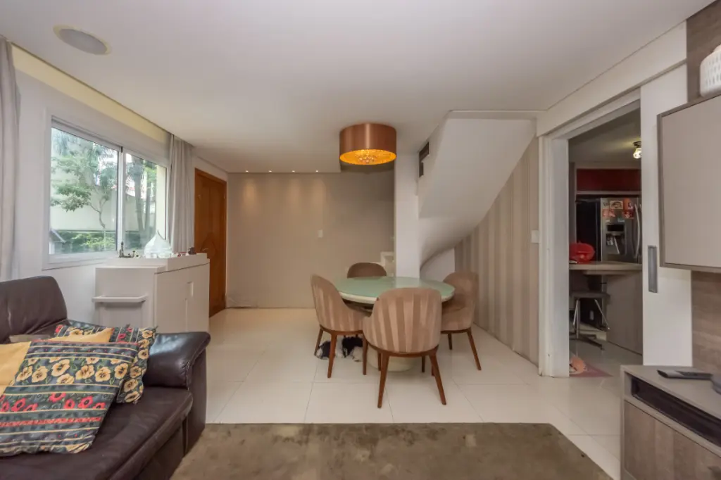 Sobrado de 107 m² em Condomínio conta com três dormitórios, sendo uma suíte, sala para dois ambientes, lavabo, cozinha funcional, área de serviço coberta, depósito e três banheiros no total. As três vagas de garagem trazem um diferencial importante para a rotina da família, oferecendo comodidade e flexibilidade no dia a dia.