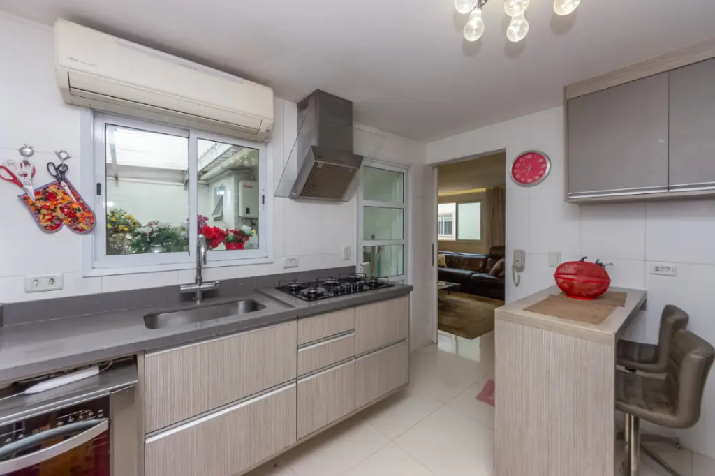 O grande destaque desta casa está nos acabamentos. Todos os ambientes possuem padrão elevado, com ar-condicionado instalado na sala e em todos os dormitórios, garantindo conforto térmico em qualquer época do ano. Nos banheiros, as bancadas em granito espanhol reforçam o cuidado com os detalhes e a durabilidade dos materiais. O aquecimento central a gás abastece todos os banheiros e também a torneira da cozinha, trazendo conforto e eficiência. Na área de serviço, o telhado Zetaflex garante iluminação natural e proteção, tornando o espaço mais funcional.