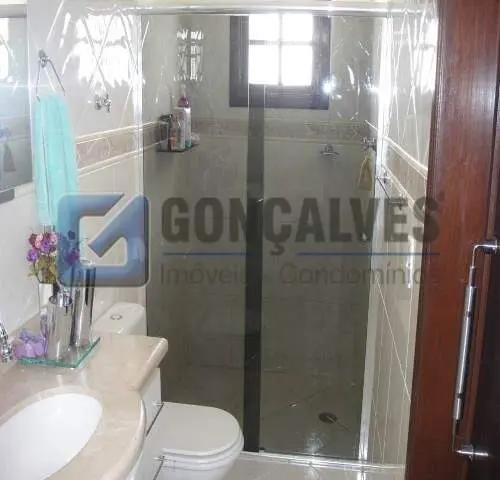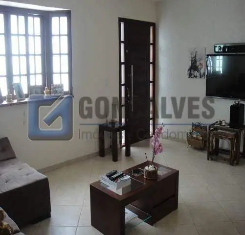 Venda de sobrado com 3 quartos, sendo 2 suítes, e 3 banheiros. Área interna de 209 m² mais área externa de 150 m² e terreno de 150 m², localizado no bairro Vila Eldízia, em Santo André. Possui interfone e impressiona pelo grande conjunto de vagas (7). Ideal para quem busca espaço, conforto e praticidade sem cobrança de condomínio.