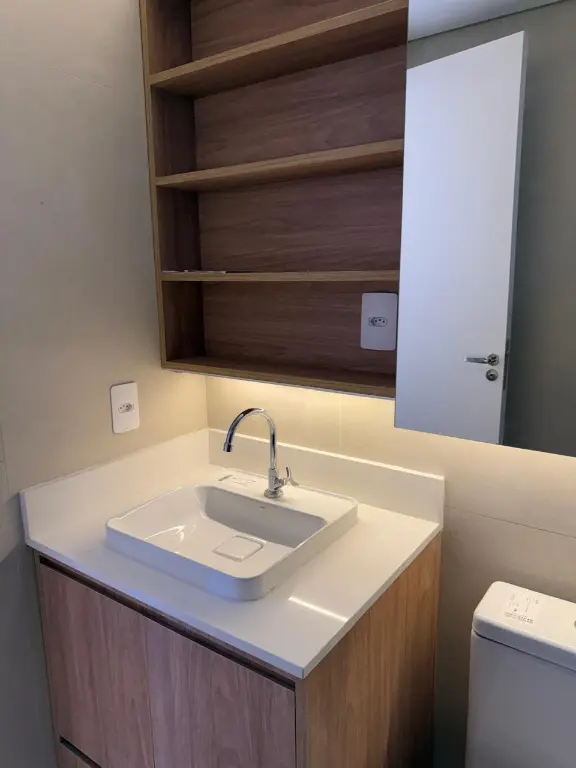 Studio moderno totalmente mobiliado, com acabamentos de alto padrão, piso vinílico e ampla janela com persiana e vista para a Praça Rotary. Possui área de trabalho integrada, cozinha planejada com bancada em granito, cooktop e geladeira em inox, além de banheiro com box de vidro, porcelanato, nicho, ventilação natural e armários sob medida. Prédio novo, em localização privilegiada, próximo à Santa Casa, Sesc Consolação, Universidade Mackenzie e às estações Higienópolis-Mackenzie e República do metrô.