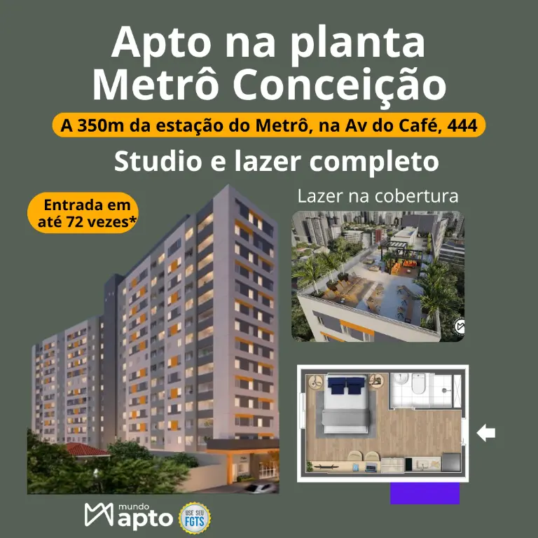 Studio com muito lazer e bem pertinho da estação do Metrô Conceição, cerca de 350 metros apenas e lazer completo.