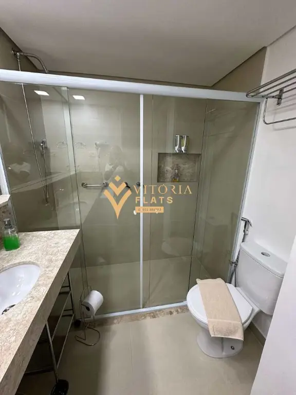 Com cozinha completa equipada (cooktop, geladeira, micro-ondas, liquidificador, torradeira elétrica, chaleira elétrica, máquina de café, ferro de passar), além de máquina de lavar e secar no próprio flat.