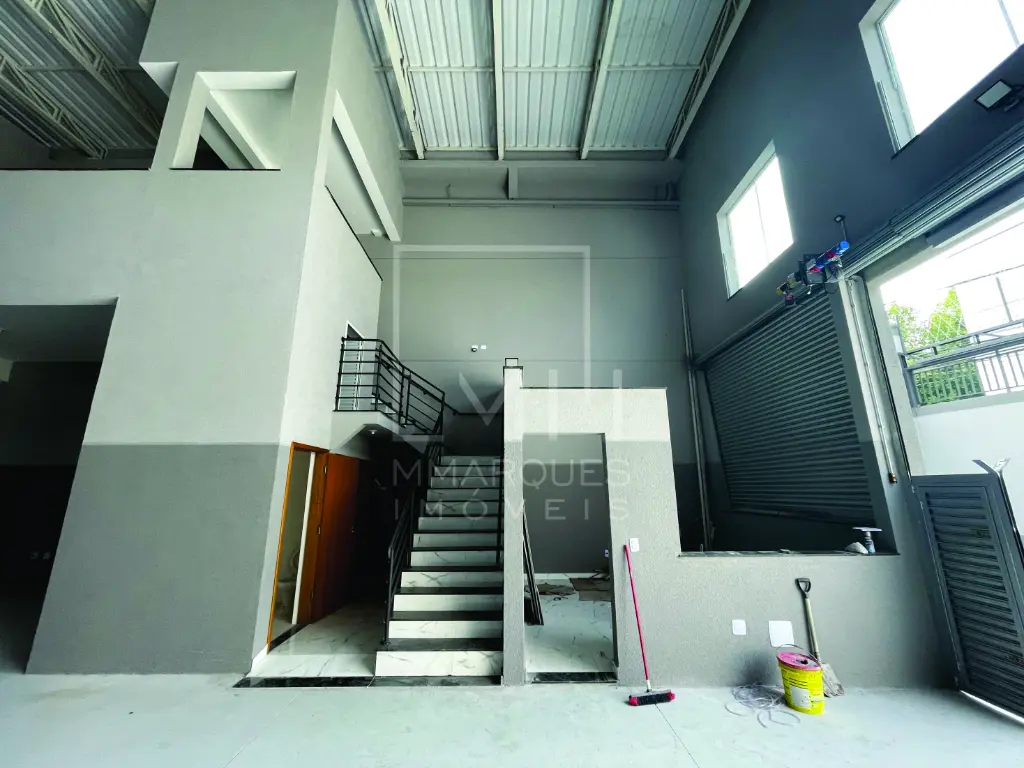 Excelente localização, com 400m² de galpão com mezanino, 04 banheiros e porta automatizada.