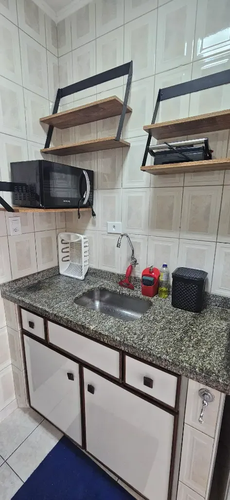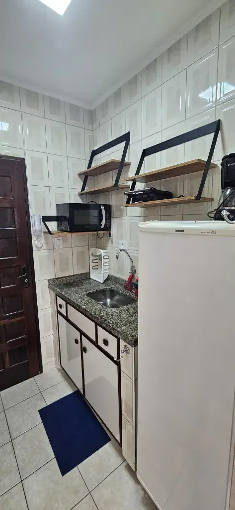 Kit mobiliada com vaga de garagem rotativa a uma quadra da praia, água, luz, condomínio e IPTU incluso no pacote, bairro Canto do Forte, prédio sem elevador fica no 1º andar, local excelente perto de supermercado, padaria, farmácia, hospitais, escolas etc...